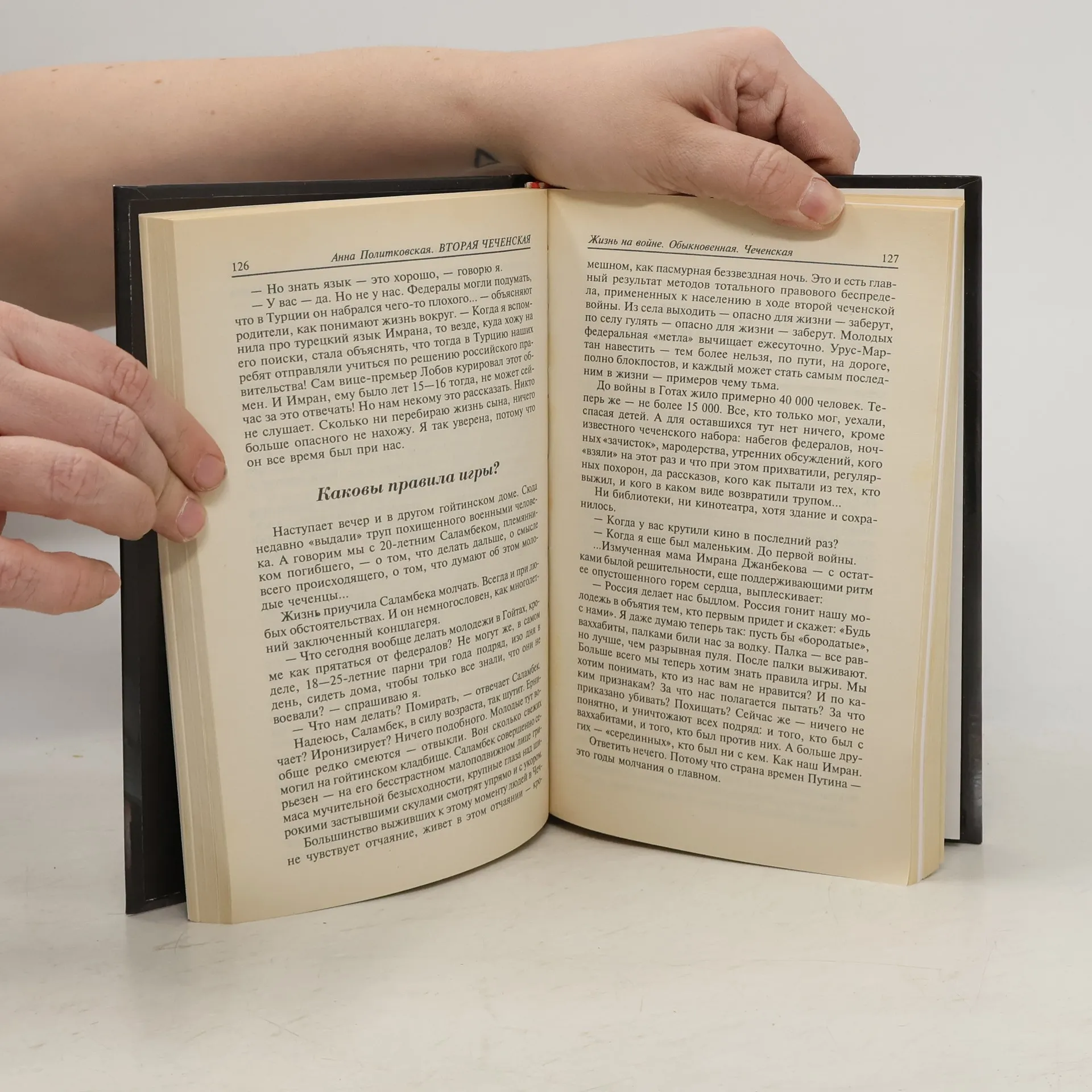 Кто я такая? И почему я пишу о второй чеченской войне? Я журналистка. Работаю спецкором столичной "Новой газеты", и это единственная причина, почему я увидела войну, - меня послали ее освещать. Поэтому я езжу в Чечню каждый месяц, начиная с июля 1999 года. Естественно, исходила всю Чечню вдоль и поперек... Люди часто спрашивают одно и то же: "А зачем вы все это пишете? Зачем нас пугаете? Зачем это нам?" Уверена, так надо. По одной простой причине: мы современники этой войны, и все равно нам отвечать за нее... И тогда не отговоришься классическим советским: мол, не был, не состоял, не участвовал... Так знайте же. И вы будете свободны от цинизма. И от расизма, в вязкий омут которого всё более скатывается наше общество. И от скоропалительных и страшных личных решений о том, кто есть кто на Кавказе, и есть ли там сегодня вообще герои.