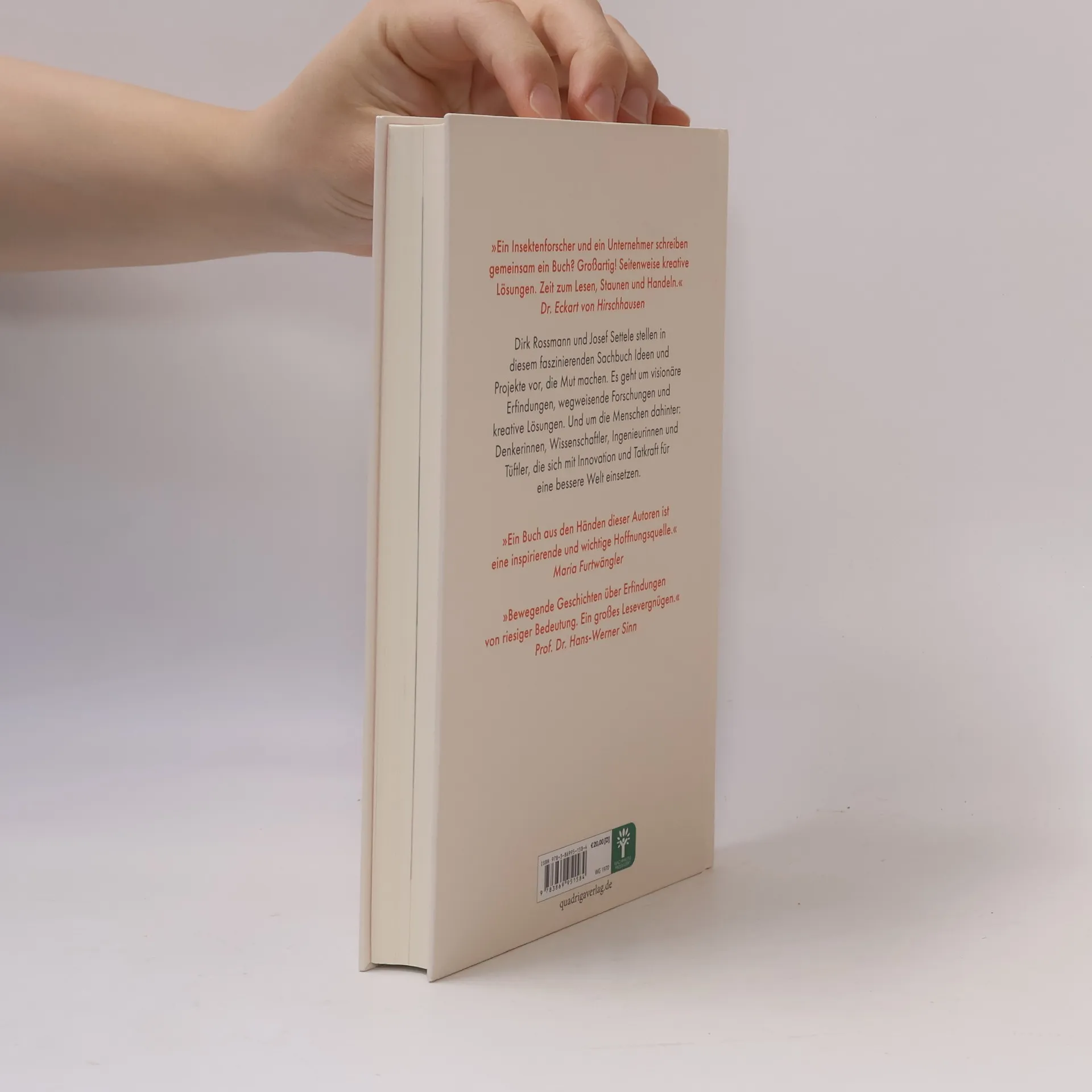 »Ein Insektenforscher und ein Unternehmer schreiben gemeinsam ein Buch? Großartig! Seitenweise kreative Lösungen. Zeit zum Lesen, Staunen und Handeln.« Dr. Eckart von Hirschhausen Der Kampf gegen den Klimawandel wird nebenan geführt. Erfinderinnen und Denker, Wissenschaftler und Ingenieurinnen machen mit ihren Ideen und Projekten Mut. Dirk Rossmann und Josef Settele haben sie für dieses Buch besucht, mit ihnen gesprochen und ihre Geschichten aufgeschrieben. Entstanden ist daraus eine beeindruckende Erzählung über Helden zum Anfassen. Eine Erzählung über ihre Innovationen, ihre Zähigkeit, ihre klugen Einfälle, aber auch über ihren Alltag, ihre Normalität.Die Autoren machen Hoffnung. Und diese ist, neben aller Tatkraft und allen Ideen, von absoluter Wichtigkeit. Nur mit ihr hat unser aller Einsatz für unsere Lebensgrundlagen Aussicht auf Erfolg. »Ein Buch aus den Händen dieser Autoren ist eine inspirierende und wichtige Hoffnungsquelle.« Maria Furtwängler »Bewegende Geschichten über Erfindungen von riesiger Bedeutung. Ein großes Lesevergnügen.« Prof. Dr. Hans-Werner Sinn
