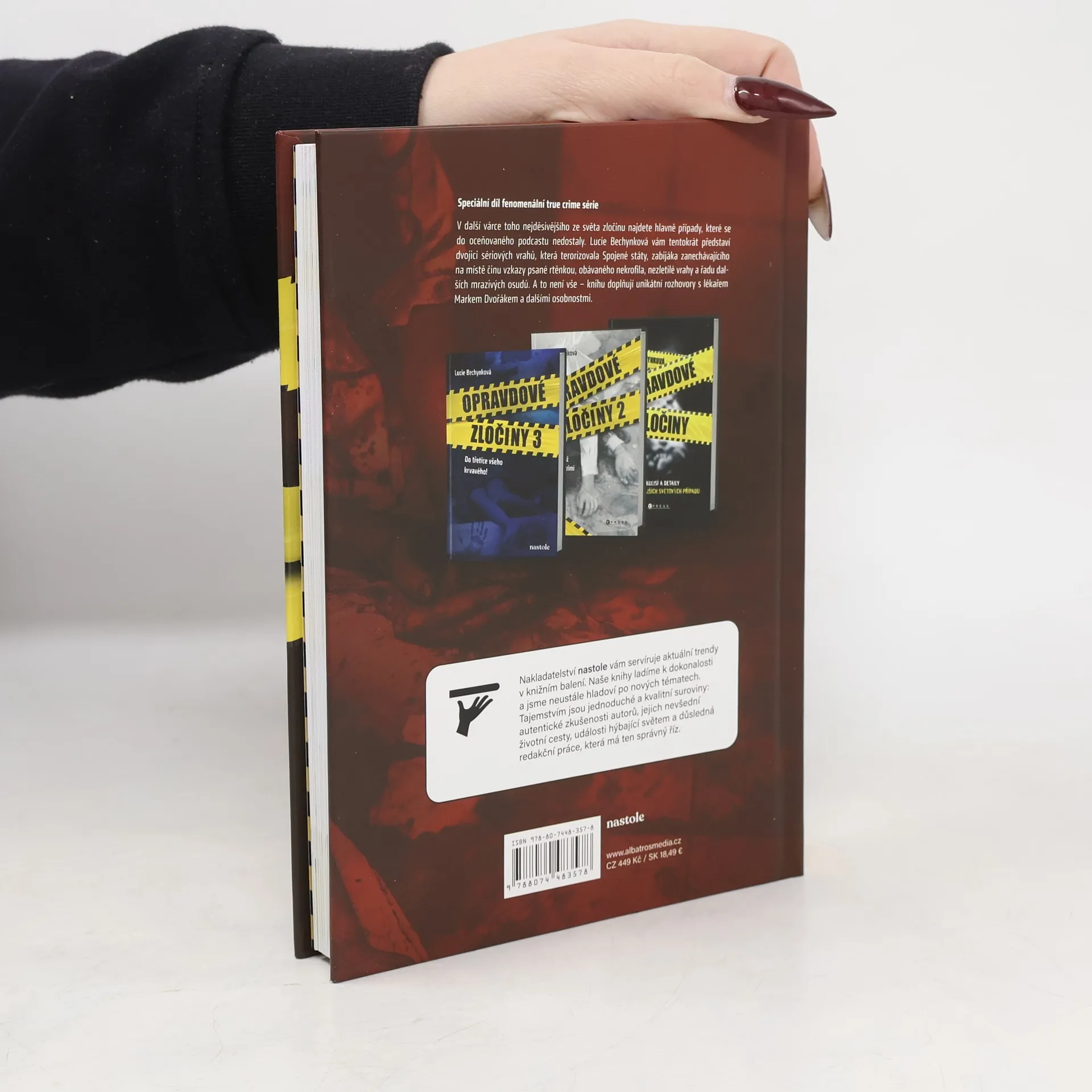V další várce toho nejděsivějšího ze světa zločinu najdete hlavně případy, které se do oceňovaného podcastu nedostaly. Lucie Bechynková vám tentokrát představí dvojici sériových vrahů, která terorizovala Spojené státy, zabijáka zanechávajícího na místě činu vzkazy psané rtěnkou,obávaného nekrofila, nezletilé vrahy a řadu dalších mrazivých osudů. A to není vše – knihu doplňují unikátní rozhovory s lékařem Markem Dvořákem a dalšími osobnostmi.