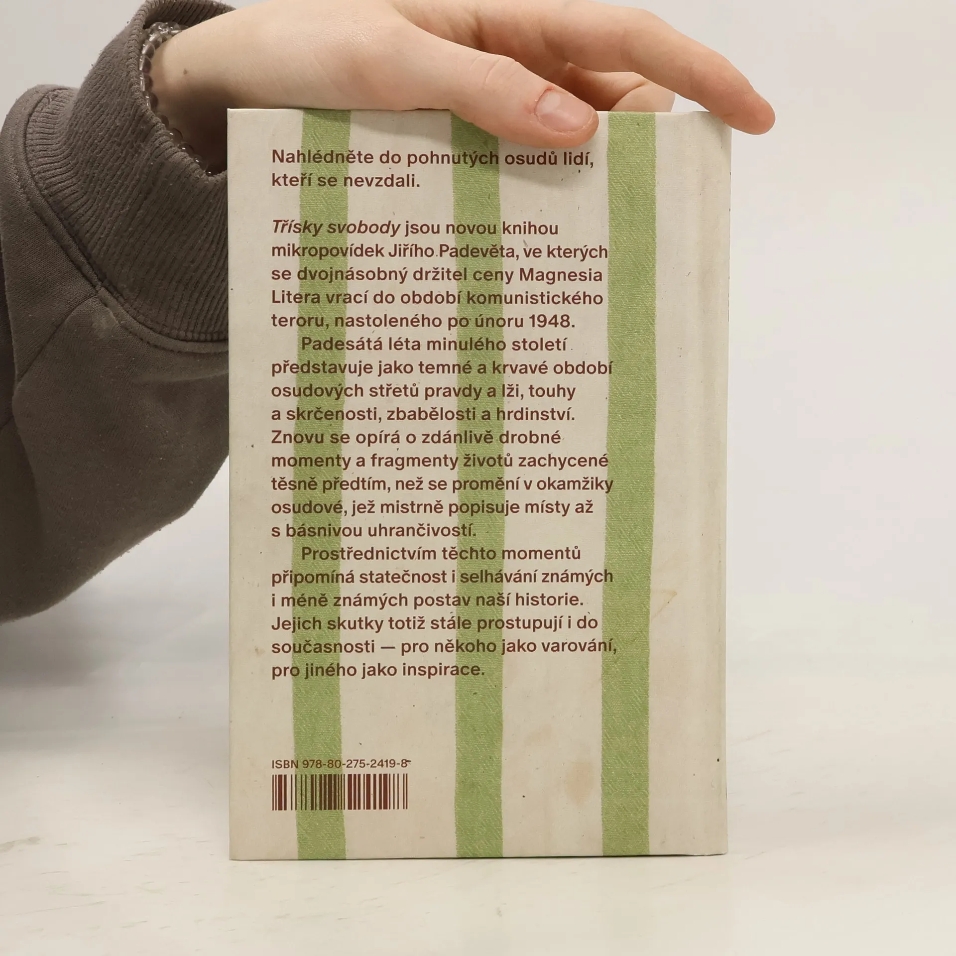Nahlédněte do pohnutých osudů lidí, kteří se zapojili do boje proti komunistickému režimu. Třísky svobody jsou novou knihou mikropovídek Jiřího Padevěta, ve kterých se spisovatel, knihkupec, nakladatel a dvojnásobný držitel ceny Magnesia Litera vrací do období komunistického teroru, nastoleného po únoru 1948. Padesátá léta minulého století představuje jako temné a krvavé období osudových střetů pravdy a lži, touhy a skrčenosti, jako dobu, která proti sobě stavěla kladiva a pistole, myšlenky a ideologie a která zrůdně pošlapala a potrestala i ten nejmenší sen o svobodě. Znovu se přitom opírá o zdánlivě drobné momenty a fragmenty životů zachycené těsně předtím, než se promění v okamžiky osudové, které mistrně popisuje místy až s básnivou uhrančivostí. Jejich prostřednictvím připomíná hrdinství i selhávání známých i méně známých postav naší historie. Jejich skutky totiž stále prostupují i do současnosti — pro někoho jako varování, pro někoho jako inspirace.