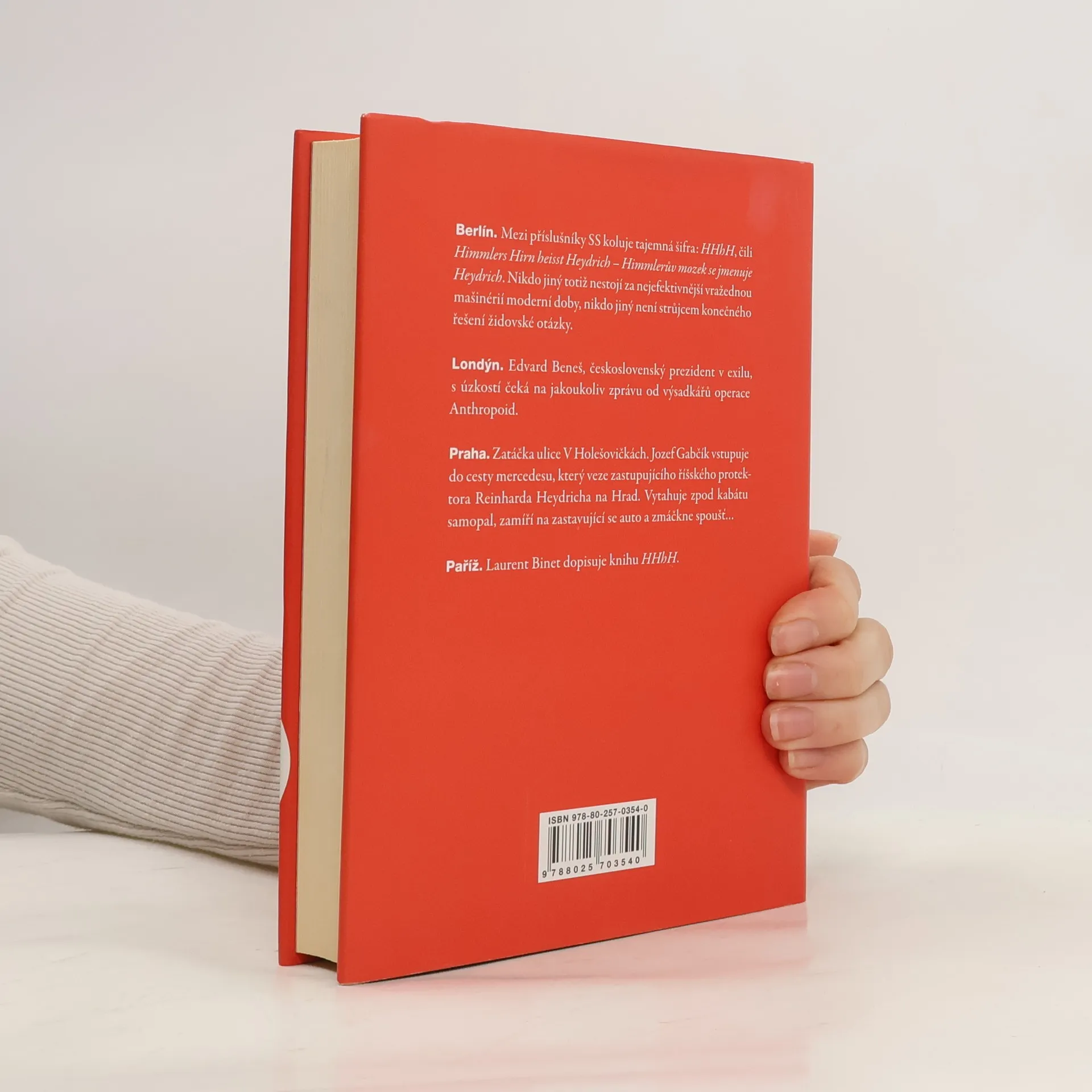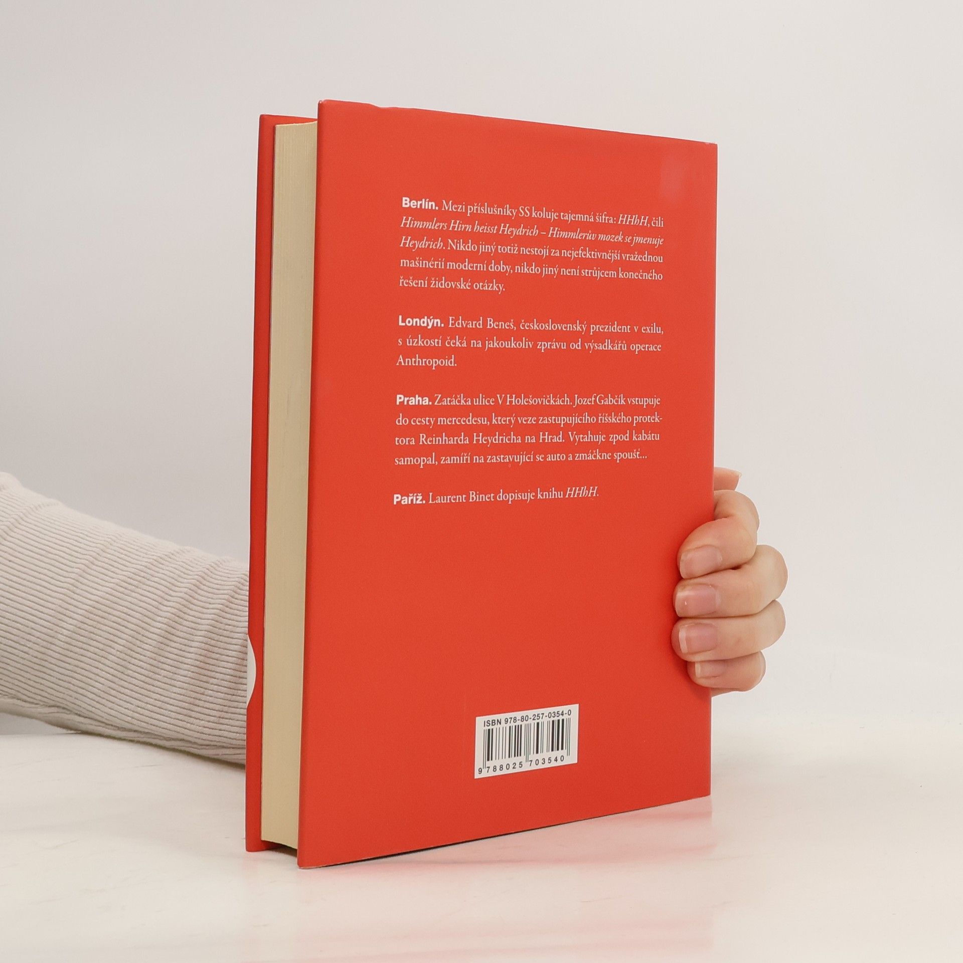Je květen 1942 a výsadkáři Jozef Gabčík a Jan Kubiš se připravují na cíl operace Anthropoid: zabít Reinharda Heydricha, zastupujícího říšského protektora Protektorátu Čechy a Morava, „pražského kata“ a „blonďatou bestii“. Druhého nejvyššího muže v hierarchii SS provází šeptem pronášená tajemná zkratka HHhH: Himmlers Hirn heißt Heydrich – Himmlerův mozek se jmenuje Heydrich. Ne nadarmo – Heydrich totiž patří k hlavním organizátorům židovského holocaustu neboli Endlösungu... Strhující prvotina francouzského spisovatele Laurenta Bineta, který dlouho pobýval na Slovensku a v Česku, barvitě vykresluje okolnosti „nejodvážnějšího protinacistického činu v dějinách druhé světové války“ a novátorsky v něm zkoumá vztah mezi realitou a fikcí.
