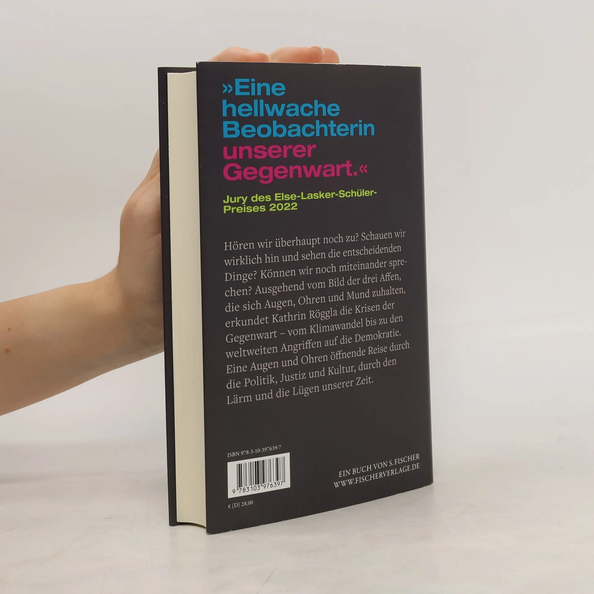 »Eine hellwache Beobachterin unserer Gegenwart.« Jury des Else-Lasker-Schüler-Preises 2022 Beim »Reichsbürger«-Prozess in Frankfurt sitzen die Verfassungsfeinde längst überall im Publikum. An die Wände von Universitäten werden mitten in Deutschland antisemitische Parolen gesprayt. Und über den Klimawandel wird erstaunlich leise gesprochen. Alles ist hyperpolitisch, auch die Kunst. Aber hören wir überhaupt noch zu? Sehen wir die entscheidenden Dinge? Können wir noch miteinander sprechen? Wie immer in ihren Büchern streift Kathrin Röggla als engagierte Zeitgenossin durch unsere Gegenwart. Sie schaut hin, hört zu, befragt die Wörter und riskiert ihre Sätze, um zu neuen Erzählformen zu finden. Denn was in der sogenannten Polykrise auch in Frage steht, sind die Spielräume der Literatur.