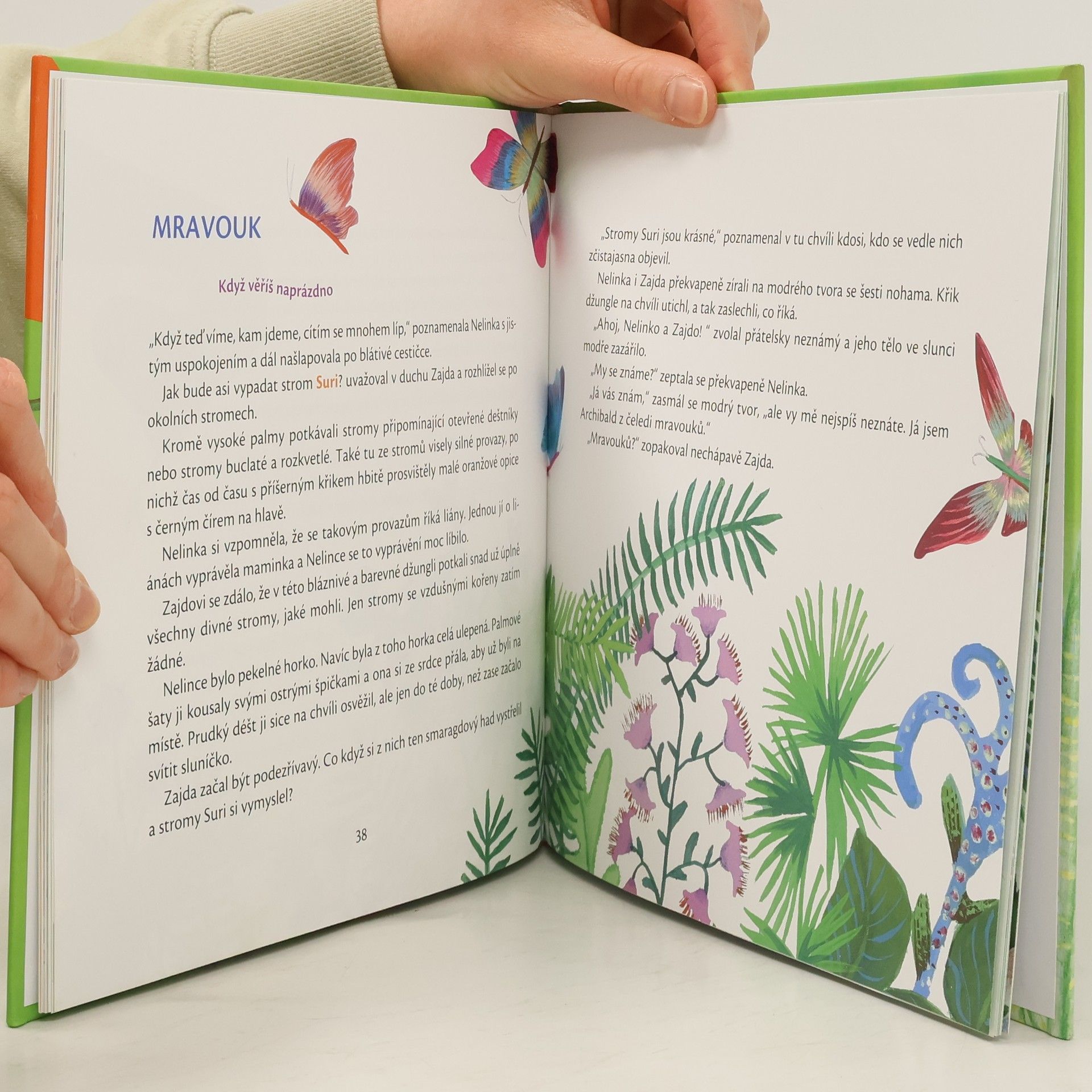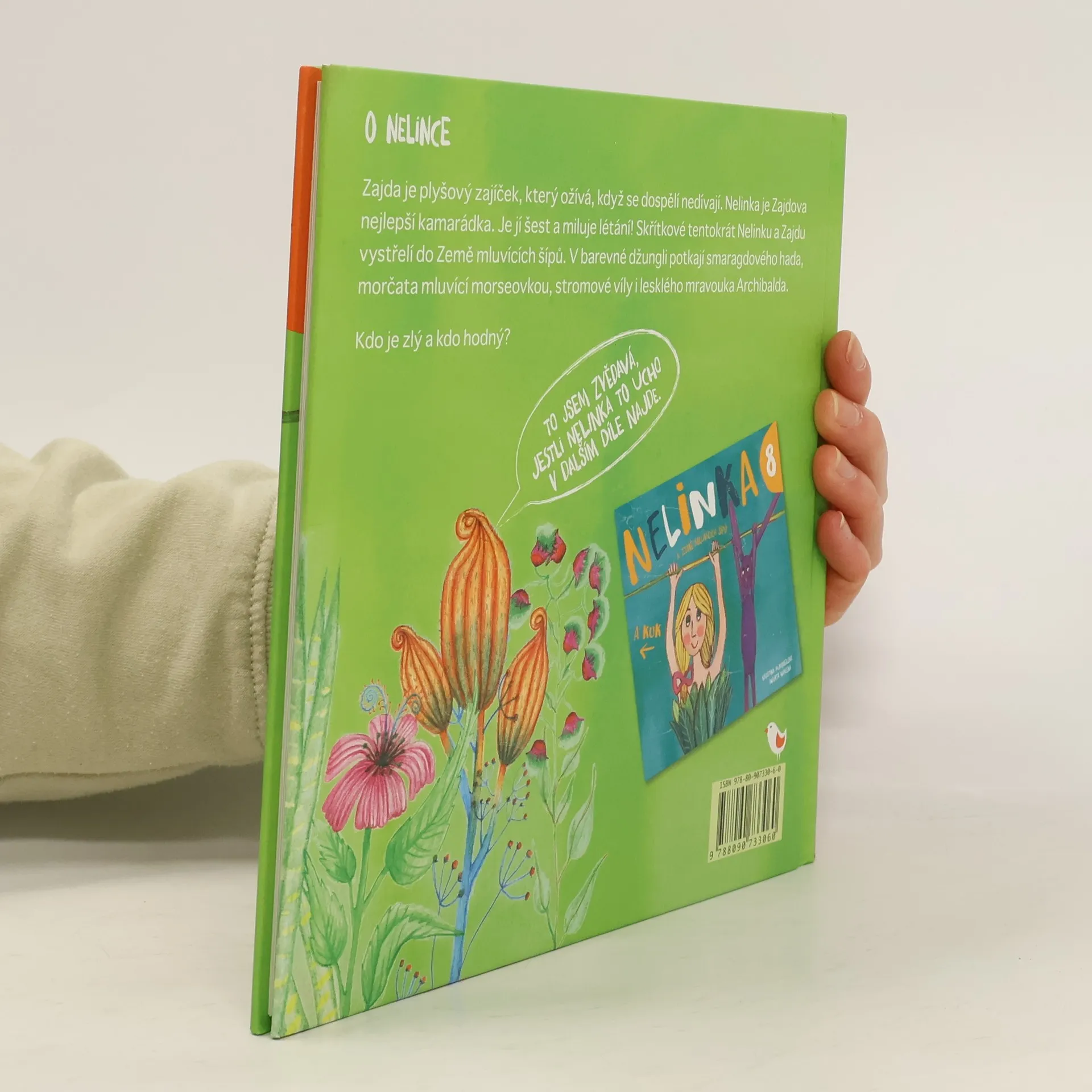 Další pokračování dobrodružných příběhů Nelinky a Zajdy. Tentokrát se vypraví pro čtvrtý posvátný symbol do Země mluvících šípů. Vydejte se s Nelinkou a Zajdou do Země mluvících šípů, kde se oba budou vznášet v bublinách nad duhovou bažinou a obdivovat vzácné stromy Suri. Náhodou zakopnou o Blizana sametonohého, který se jim bude nesmírně hodit. Podaří se jim najít posvátné ucho a budou skřítkové zase slyšet? Nakladatelská anotace.