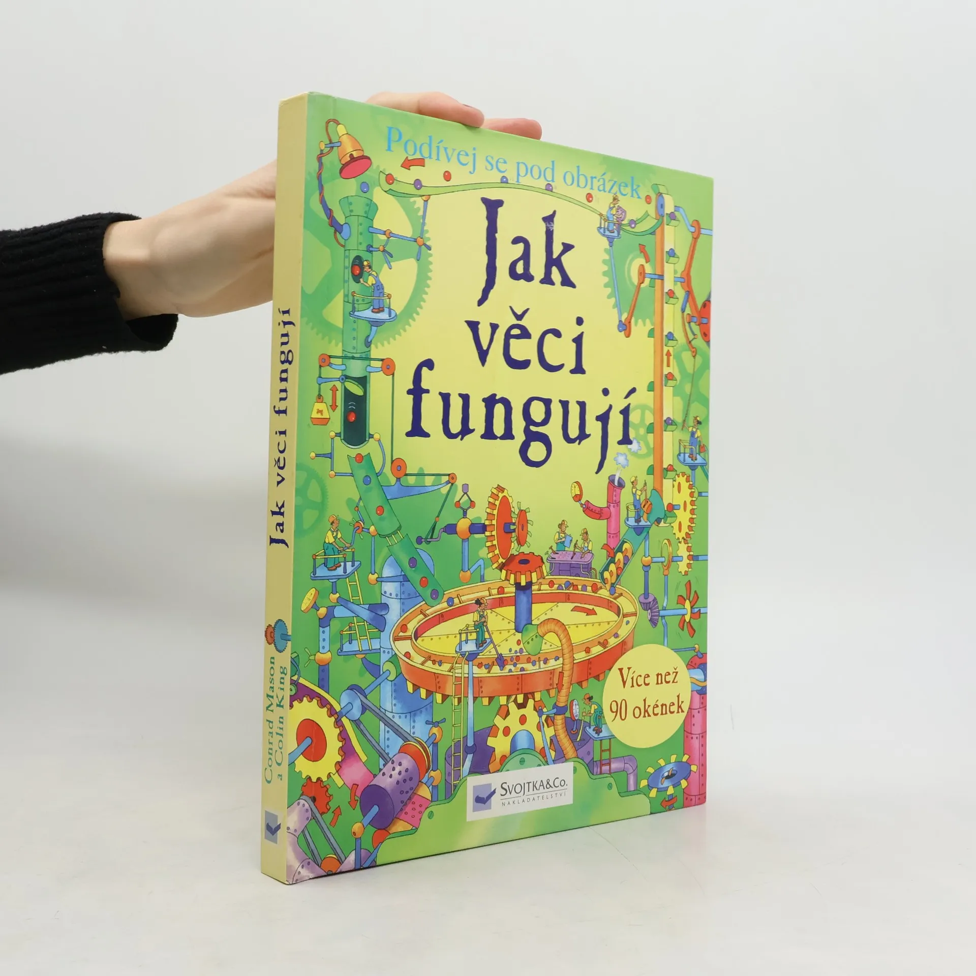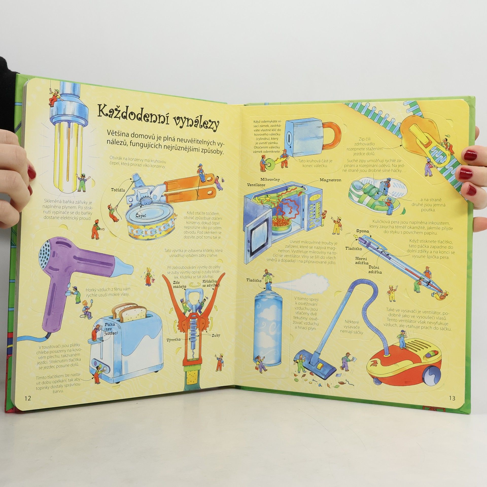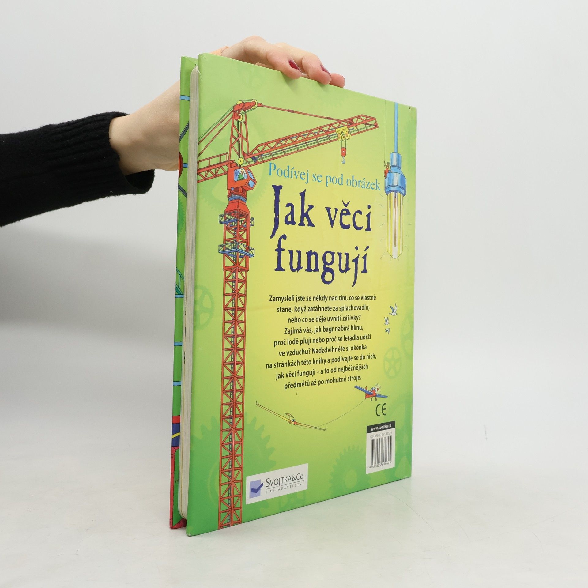 Zamysleli jste se někdy nad tím, jak protéká voda splachovacím zařízením, případně co se děje uvnitř zářivky – proč vlastně svítí? Zajímá vás, jak bagr nabírá hlínu, proč lodě plují nebo proč se letadla udrží ve vzduchu? Nadzdvihněte okénka na stránkách této knihy a podívejte se do nich, jak věci fungují – a to od nejběžnějších předmětů až po mohutné stroje. V knížce jich naleznete více než 90.