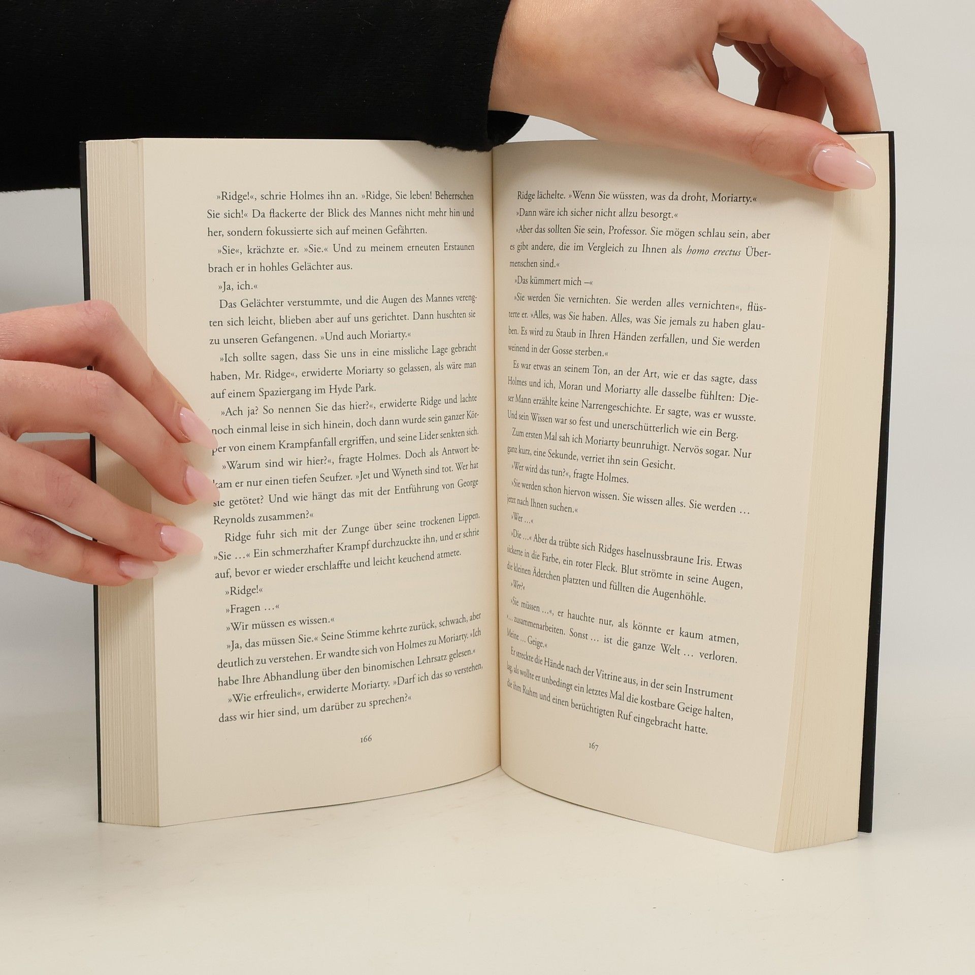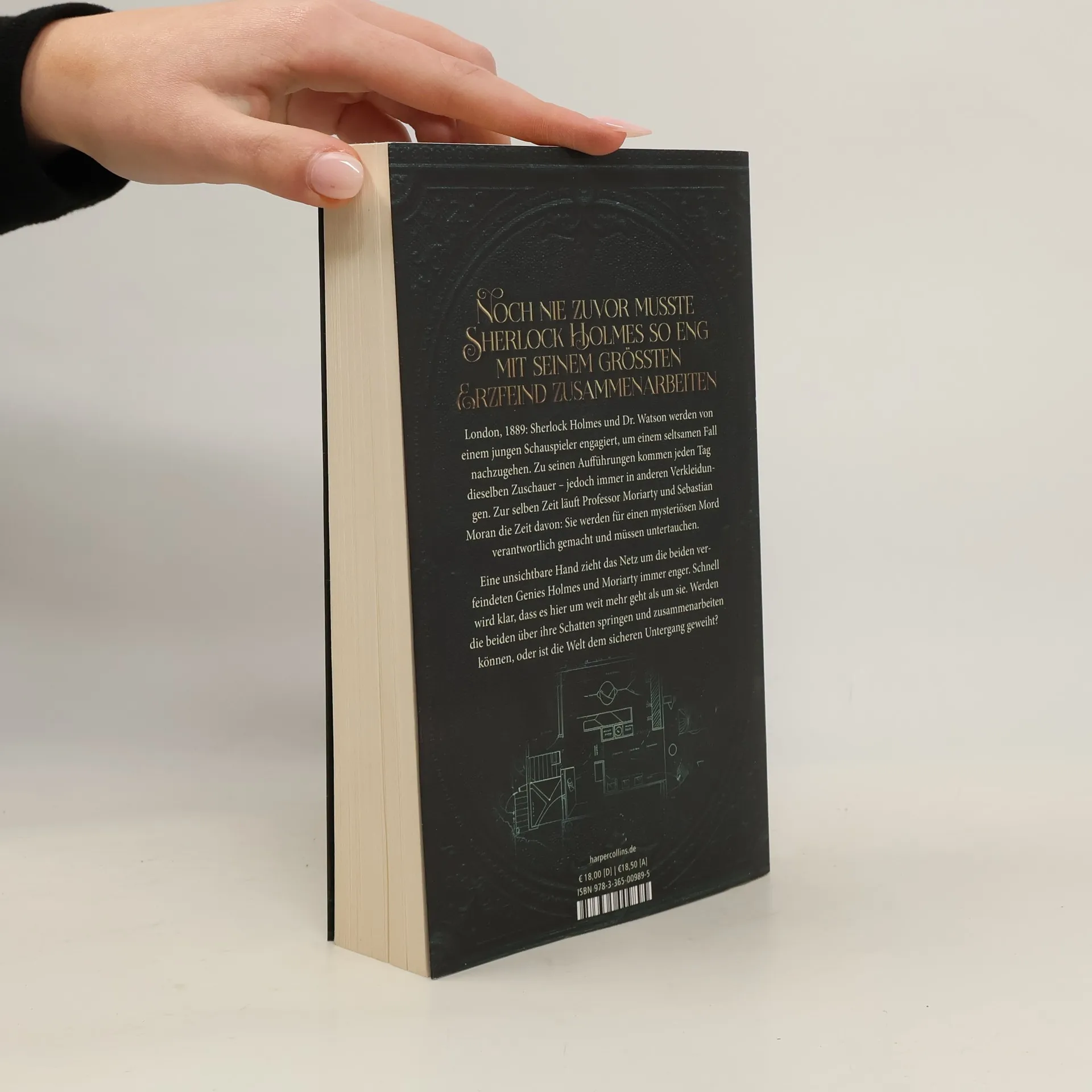Noch nie zuvor musste Sherlock Holmes so eng mit seinem größten Erzfeind zusammenarbeiten London, 1889: Sherlock Holmes und Dr. Watson werden von einem jungen Schauspieler engagiert, um einem seltsamen Fall nachzugehen. Zu seinen Aufführungen kommen jeden Tag dieselben Zuschauer – jedoch immer in anderen Verkleidungen. Zur gleichen Zeit läuft Professor Moriarty und Sebastian Moran die Zeit davon: Sie werden für einen mysteriösen Mord verantwortlich gemacht und müssen untertauchen. Eine unsichtbare Hand zieht das Netz um die beiden verfeindeten Genies Holmes und Moriarty immer enger. Schnell wird klar, dass es hier um weit mehr geht als sie. Werden die beiden über ihre Schatten springen und zusammenarbeiten können, oder ist die Welt dem sicheren Untergang geweiht? Ein kriminalistisches Abenteuer auf den Spuren Arthur Conan Doyles