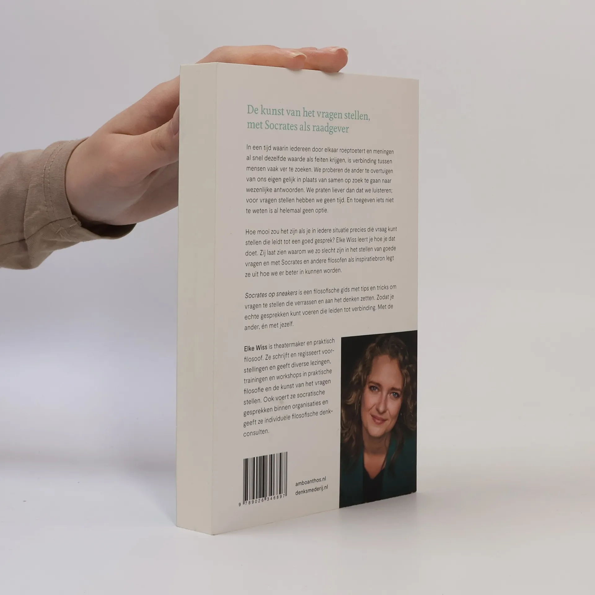 Met 'Socrates op sneakers' tackelt praktisch filosoof Elke Wiss de kunst van een goed gesprek. In een tijd waarin iedereen door elkaar roeptoetert en meningen al snel dezelfde waarde als feiten krijgen, is de verbinding vaak ver te zoeken. We proberen de ander eerder te overtuigen van ons gelijk dan dat we samen op zoek gaan naar wezenlijke antwoorden. Veel van onze gesprekken hebben daardoor meer weg van een debat dan van een dialoog. We praten liever dan dat we luisteren, voor vragen stellen hebben we geen tijd. En toegeven iets niet te weten is al helemaal geen optie. Hoe mooi zou het zijn als je op elk moment en in iedere situatie weet hoe je precies díé vraag stelt die leidt tot een goed gesprek?0In 'Socrates op sneakers' leert Elke Wiss je hoe je dat doet. Met Socrates en andere filosofen als inspiratiebron laat zij zien waarom we zo slecht zijn in het stellen van goede vragen, én hoe we er beter in worden. 'Socrates op sneakers' leert je de vaardigheden die nodig zijn om die vragen te stellen die verrassen en aan het denken zetten. Zodat we gesprekken voeren die leiden tot verdieping en verbinding. Met een ander, én met jezelf.