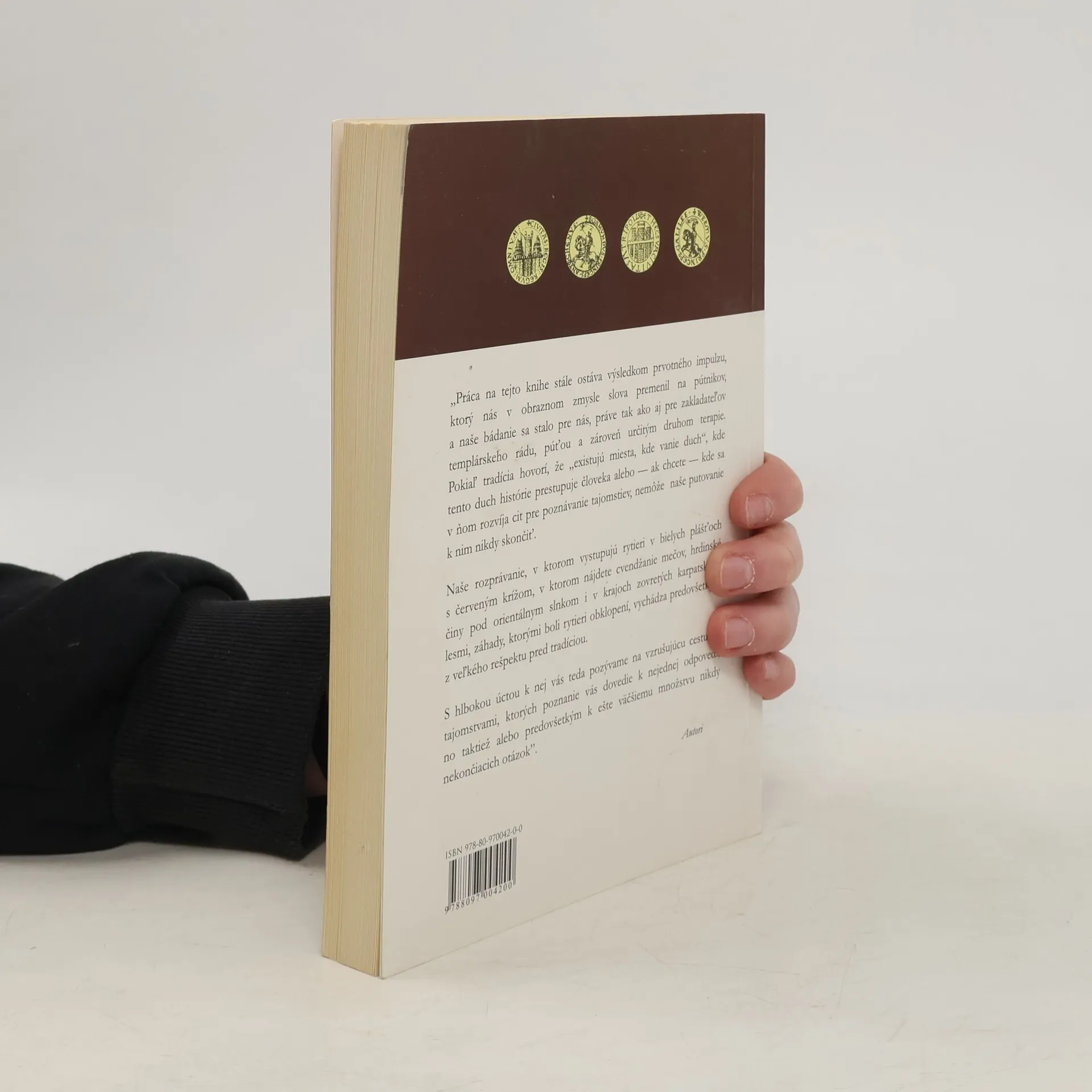 S hlbokou úctou Vás pozývame na vzrušujúcu cestu za tajomstvami prostredníctvom najnovšej knihy „Po stopách templárov na slovensku“, ktorej poznanie vás dovedie k nejednej odpovedi, no taktiež alebo predovšetkým k ešte väčšiemu množstvu nikdy nekončiacich otázok. Naše rozprávanie, v ktorom vystupujú rytieri v bielych plášťoch s červeným krížom, v ktorom nájdete cvendžanie mečov, hrdinské činy pod orientálnym slnkom i v krajoch zovretých karpatskými lesmi, záhady, ktorými boli rytieri obklopení, vychádza predovšetkým z veľkého rešpektu pred tradíciou. Kapitoly: Kliatba templárskeho kríža, Rytieri meča a kríža, Templári na Slovensku, Od zrúcanín k jaskyniam, Za boha a za kráľa, V ruinách Blatnického hradu a iné príbehy, Cesta do Lypche Soliensis, Od Dončovej hrobky ku Komtúrovmu pokladu, Tajomstvo kostola Všechsvätých, Odkaz od Damiána Fuxhoffera, Záhada červených mníchov, Záhadný kostol v Piešťanoch, Pátranie za riekou Moravou, V podzemí Kronbergu, Templári za oponou Tatier. Prvé vydanie.