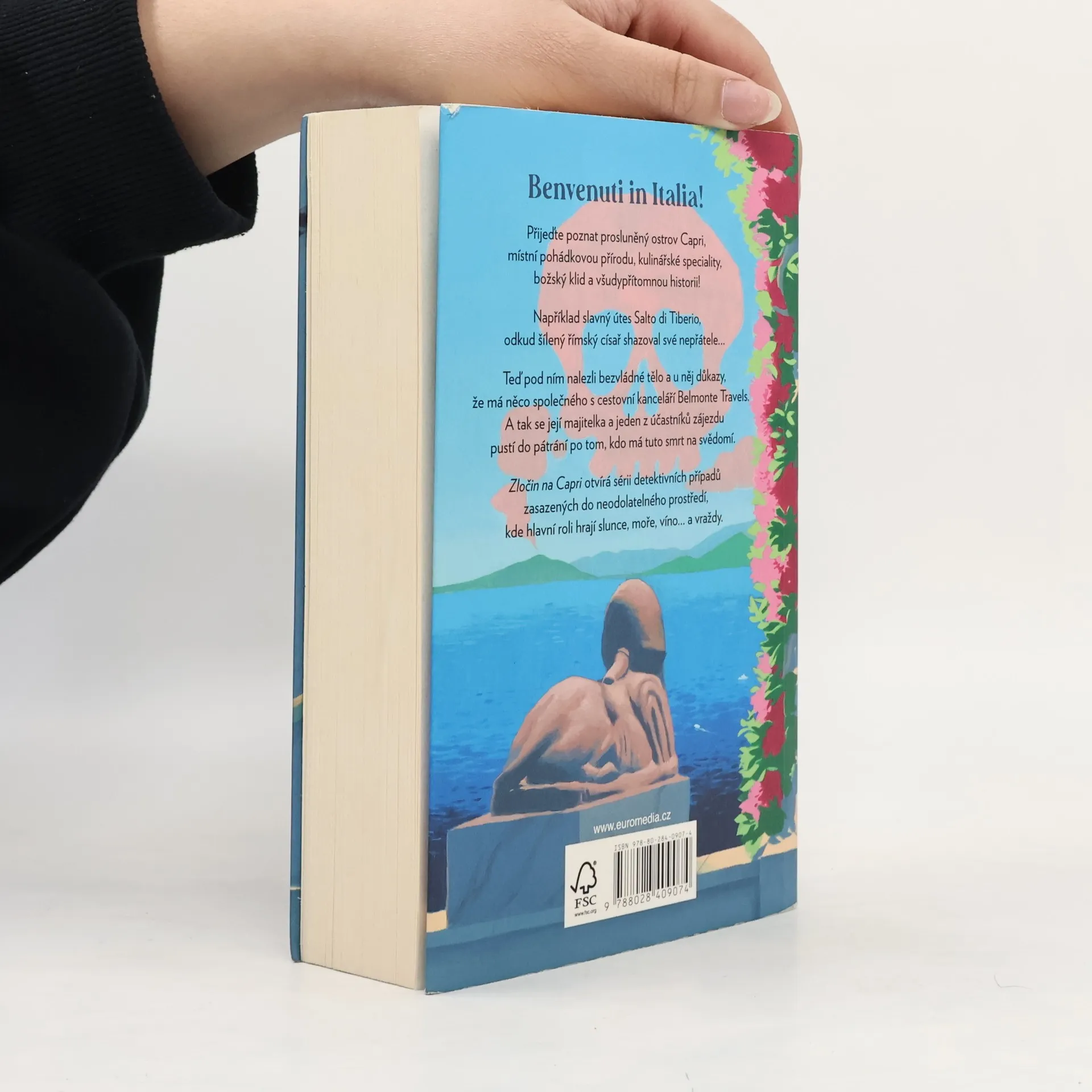 Oddechová detektivka v klasickém stylu od mistra severské krimi. Stockholmský učitel dějepisu Hugo přijíždí společně s dalšími krajany na Capri užít si místní krajinu, kulturu a kulinářské speciality díky zájezdu od Belmonte Travels. Na okouzlující ostrov však padne stín, když je ve vodě pod nechvalně proslulým útesem Salto di Tiberio nalezeno tělo. Kdo je mrtvý muž a proč má v kapse brožuru jejich cestovní kanceláře? Vplížil se do ráje had, nebo je snad mezi turisty někdo, kdo neplánoval na Capri odpočívat, ale vraždit?
