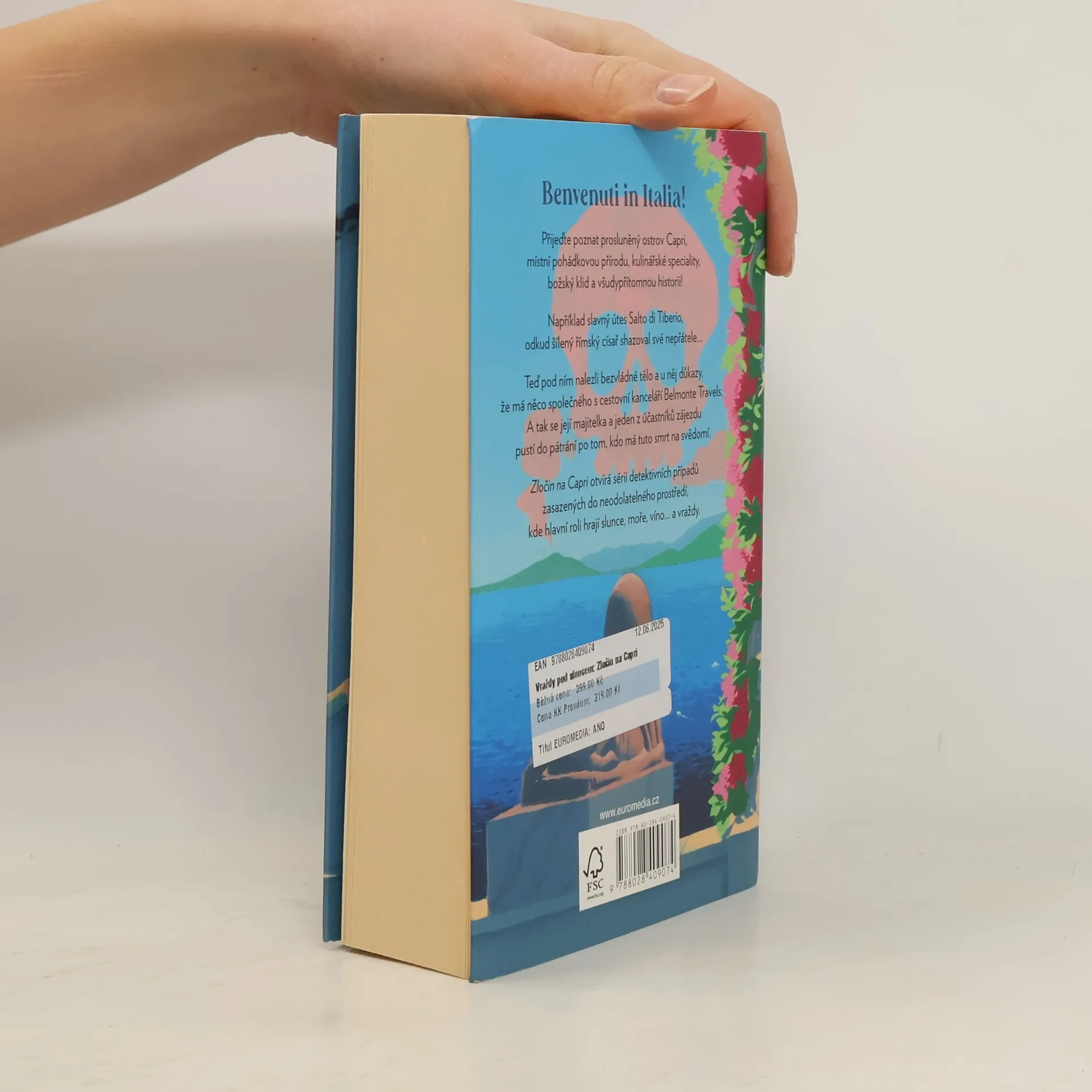 Oddechová detektivka v klasickém stylu od mistra severské krimi. Stockholmský učitel dějepisu Hugo přijíždí společně s dalšími krajany na Capri užít si místní krajinu, kulturu a kulinářské speciality díky zájezdu od Belmonte Travels. Na okouzlující ostrov však padne stín, když je ve vodě pod nechvalně proslulým útesem Salto di Tiberio nalezeno tělo. Kdo je mrtvý muž a proč má v kapse brožuru jejich cestovní kanceláře? Vplížil se do ráje had, nebo je snad mezi turisty někdo, kdo neplánoval na Capri odpočívat, ale vraždit?