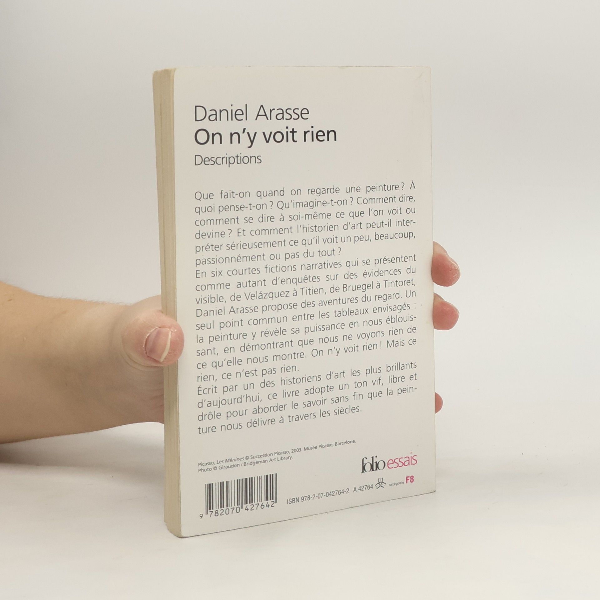 Que fait-on quand on regarde une peinture ? A quoi pense-t-on ? Qu'imagine-t-on ? Comment dire, comment se dire à soi-même ce que l'on voit ou devine ? Et comment l'historien d'art peut-il interpréter sérieusement ce qu'il voit un peu, beaucoup, passionnément ou pas du tout ? En six courtes fictions narratives qui se présentent comme autant d'enquêtes sur des évidences du visible, de Velázquez à Titien, de Bruegel à Tintoret, Daniel Arasse propose des aventures du regard. Un seul point commun entre les tableaux envisagés : la peinture y révèle sa puissance en nous éblouissant, en démontrant que nous ne voyons rien de ce qu'elle nous montre. On n'y voit rien ! Mais ce rien, ce n'est pas rien. Écrit par un des historiens d'art les plus brillants d'aujourd'hui, ce livre adopte un ton vif, libre et drôle pour aborder le savoir sans fin que la peinture nous délivre à travers les siècles.