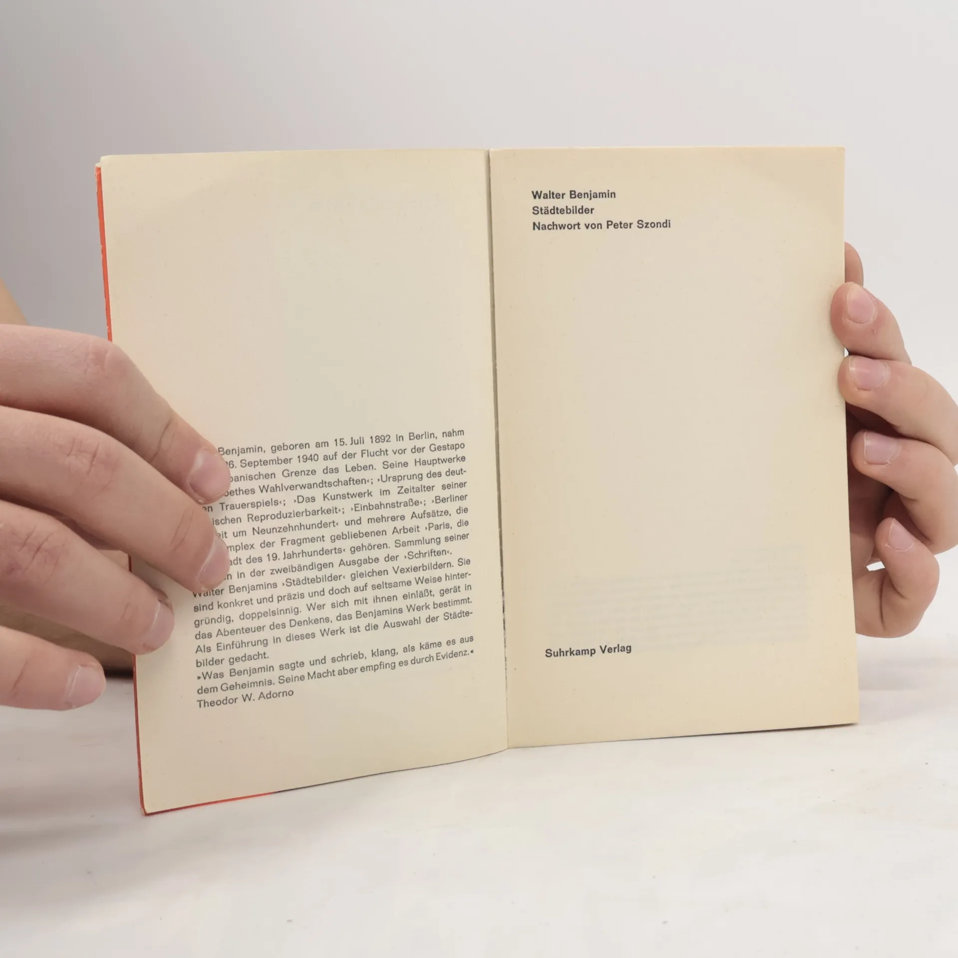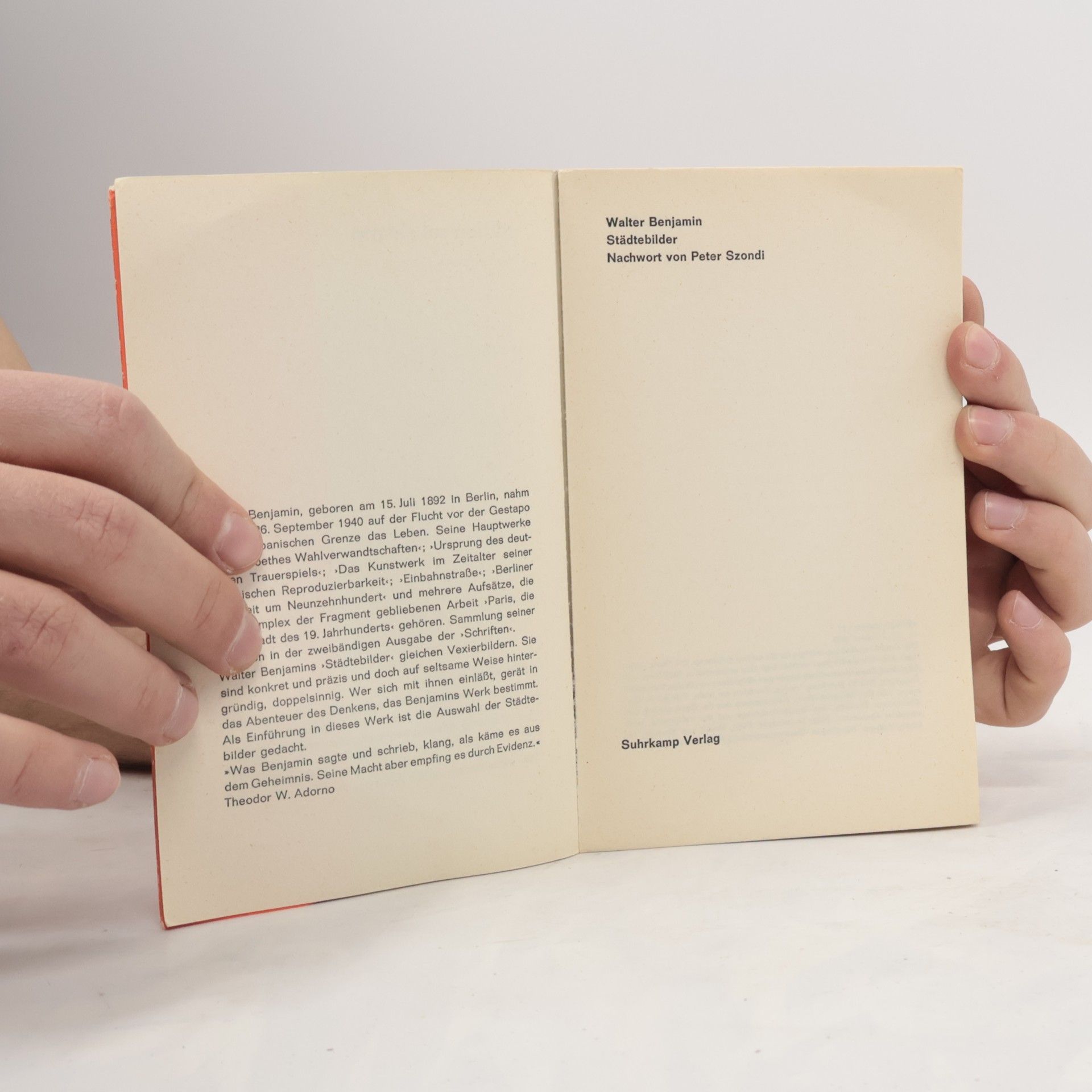 Städtebilder. Nachwort von Peter Szondi, Walter Benjamin