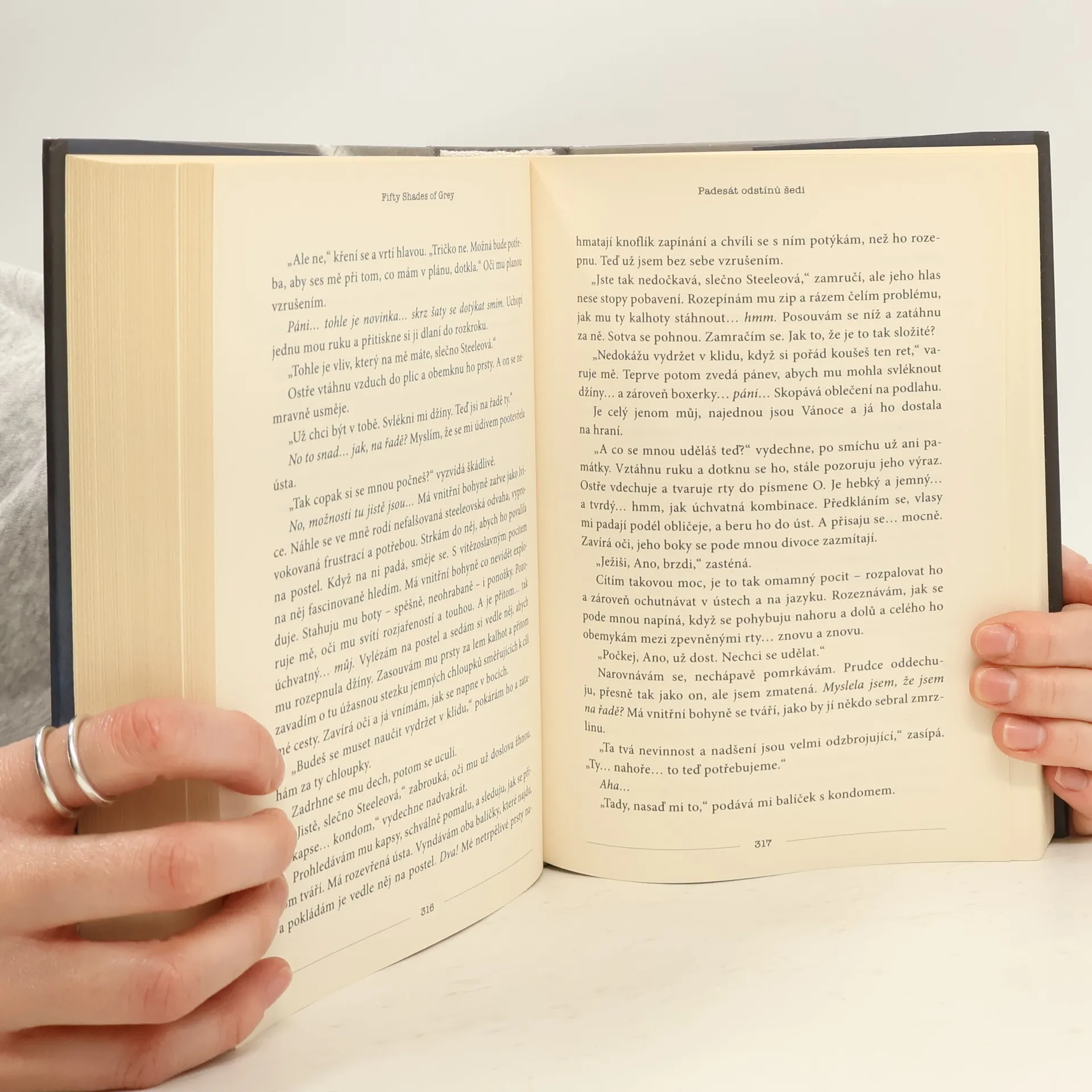 Erotický román o temných touhách v každém z nás… Když se dvaadvacetiletá studentka literatury Anastasia vydává na pohovor s mladým podnikatelem Christianem Greyem, netuší, že potká muže, který jí změní život i hodnoty. Christian je pohledný, chytrý a… tajemný. Naivní a nevinná Anastasia si začíná uvědomovat, že přes jeho skrývaná tajemství jím začíná být úplně posedlá. Ale ani Christian není vůči její kráse, šarmu a charakteru imunní a připouští, že on po ní také touží – ovšem za vlastních, specifických podmínek…