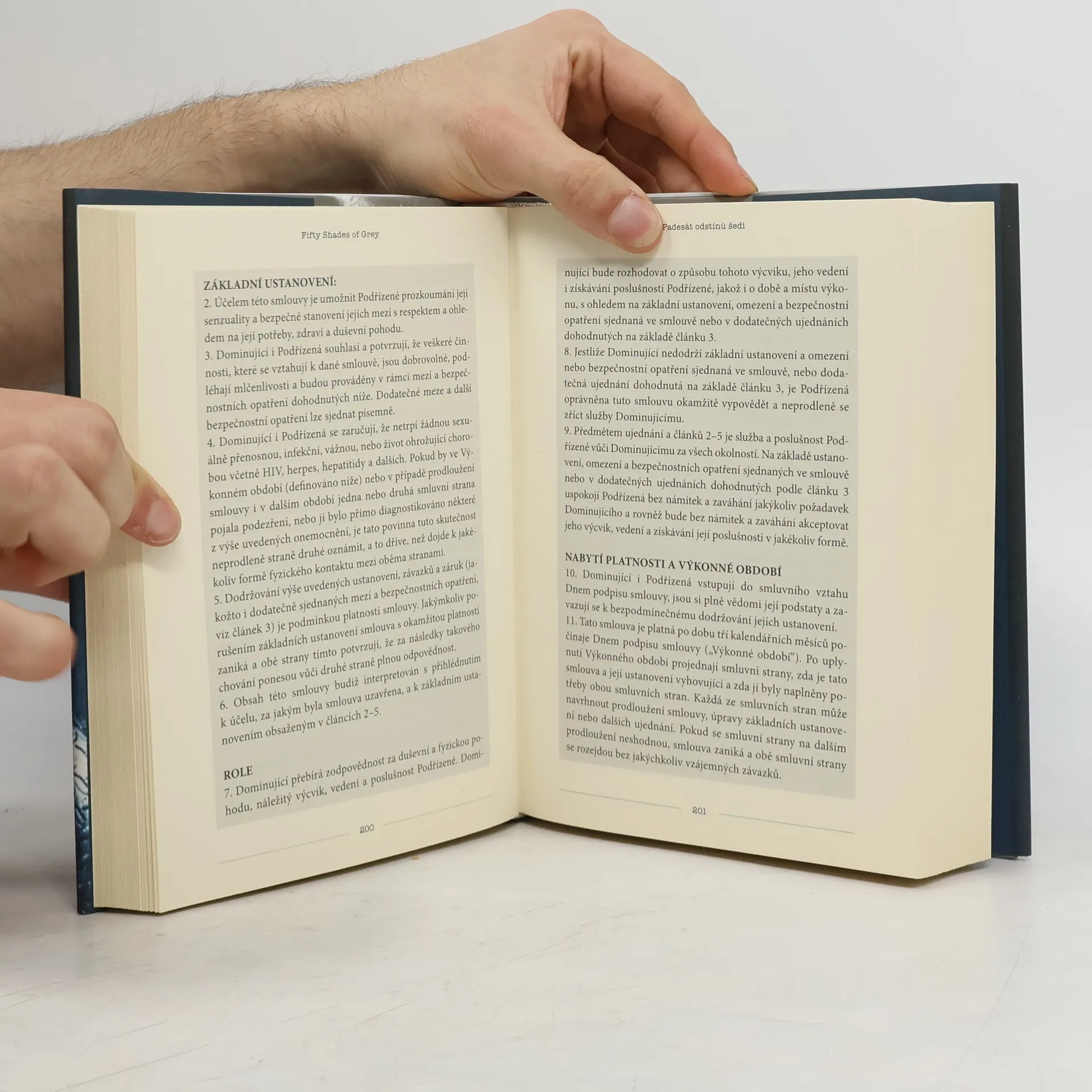Erotický román o temných touhách v každém z nás… Když se dvaadvacetiletá studentka literatury Anastasia vydává na pohovor s mladým podnikatelem Christianem Greyem, netuší, že potká muže, který jí změní život i hodnoty. Christian je pohledný, chytrý a… tajemný. Naivní a nevinná Anastasia si začíná uvědomovat, že přes jeho skrývaná tajemství jím začíná být úplně posedlá. Ale ani Christian není vůči její kráse, šarmu a charakteru imunní a připouští, že on po ní také touží – ovšem za vlastních, specifických podmínek…