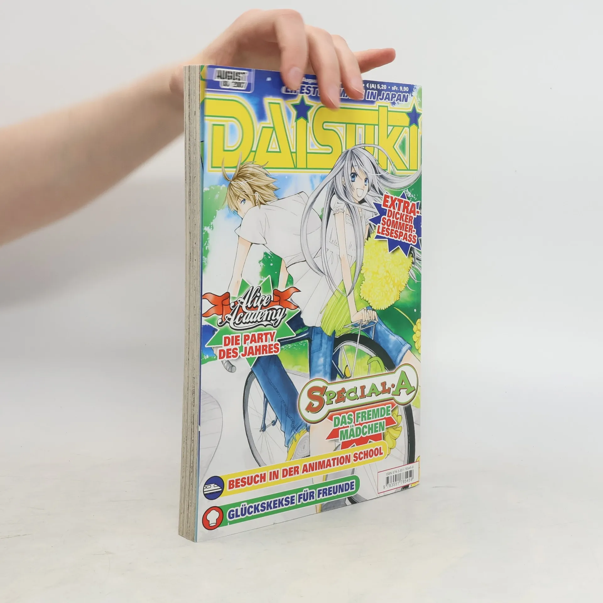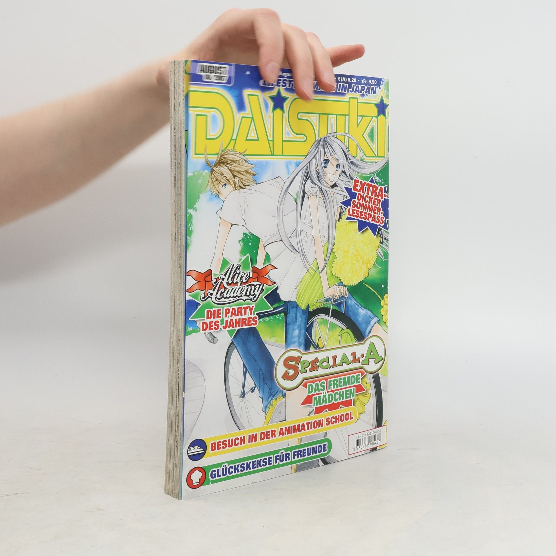 Auf 248 Seiten bietet DAISUKI jeden Monat die spannendsten und schönsten Mädchen-Manga! Natürlich sind Romantik, süße Jungs, lustige Verwirrspiele, japanische Highschools und jede Menge Humor da inklusive! Neben vielen japanischen Topserien legt DAISUKI ein besonderes Augenmerk auf deutsche Zeichentalente: Neben Nam und Tram Nguyen werden die Serien eine der berühmtesten deutschen Mangaka, Judith Park, exklusiv in DAISUKI vorveröffentlicht! Nebenbei könnt Ihr hautnah miterleben, wie die Stars die Karriereleiter aufsteigen. Wer Lust und Zeit hat, kann an zahlreichen Wettbewerben teilnehmen und die eigene Kreativität unter Beweis stellen. In der Rubrik Kiosuku werden aktuelle Bücher, coole Trends aus Japan oder spannende Games für Deine Spielekonsole vorgestellt und verlost. Für echte Japan-Fans hält DAISUKI noch ein Ass im Ärmel bereit: die neuesten Trends rund um das Kultland Japan und jede Menge lustige und interessante Informationen über die fremde Kultur - plus ein spannendes Monatshoroskop: die China Stars!