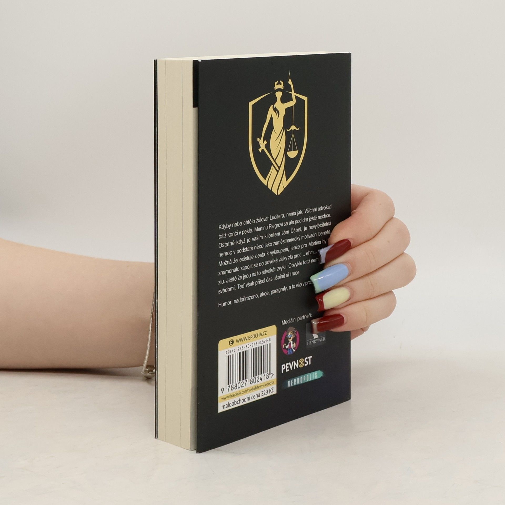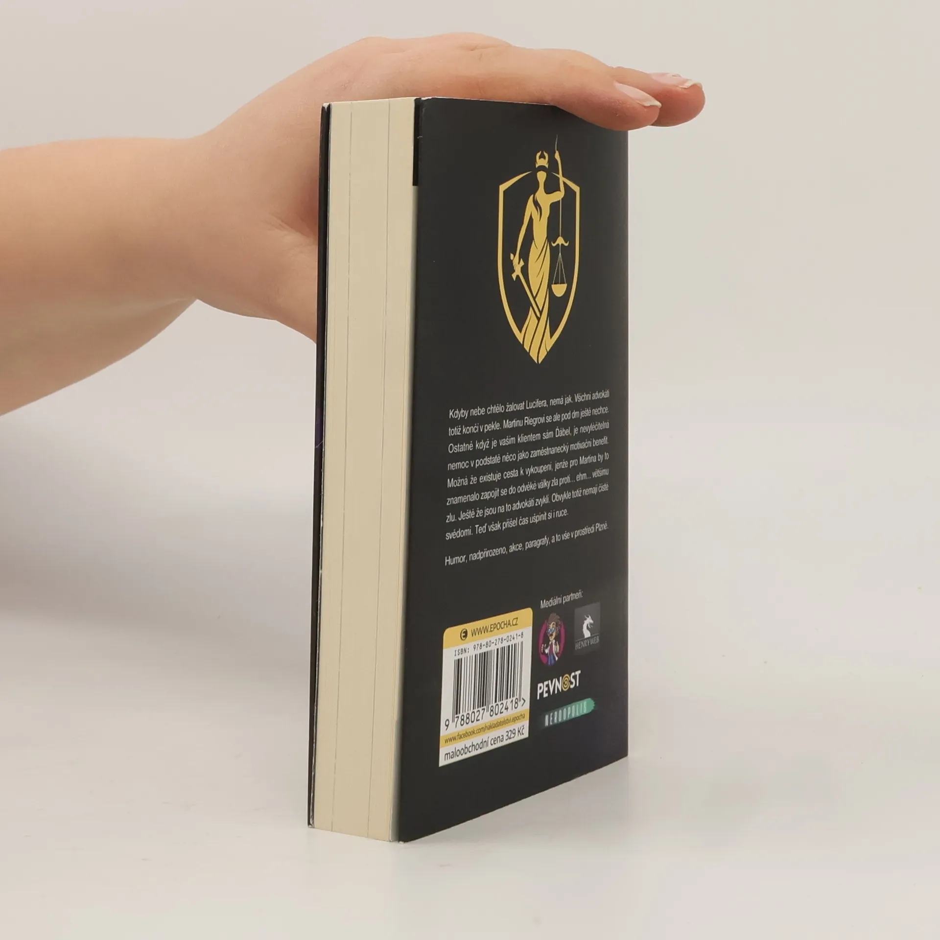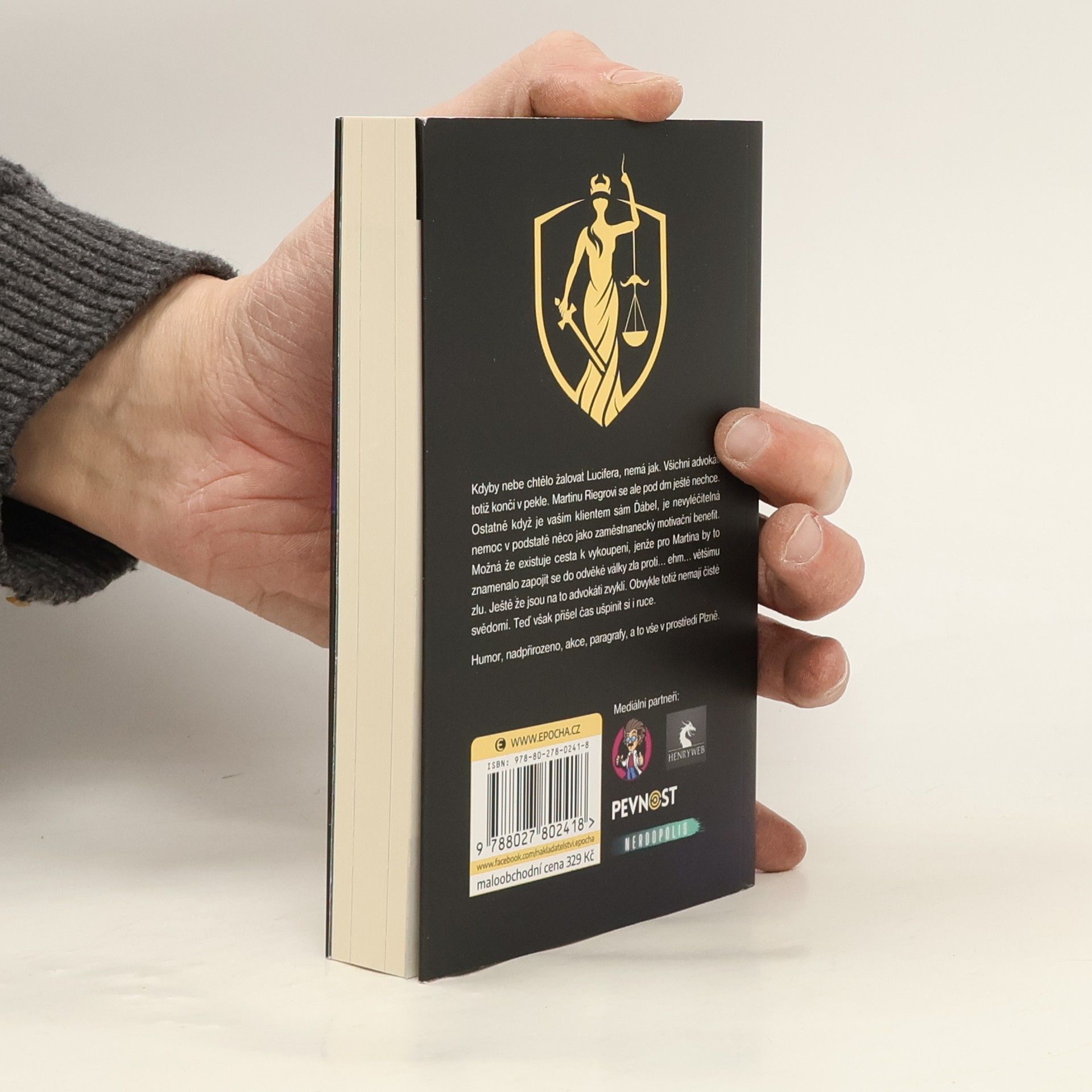 Kdyby nebe chtělo žalovat Lucifera, nemá jak. Všichni advokáti totiž končí v pekle. Martinu Riegrovi se ale pod drn ještě nechce. Ostatně když je vaším klientem sám Ďábel, je nevyléčitelná nemoc v podstatě něco jako zaměstnanecký motivační benefit. Možná že existuje cesta k vykoupení, jenže pro Martina by to znamenalo zapojit se do odvěké války zla proti… ehm… většímu zlu. Ještě že jsou na to advokáti zvyklí. Obvykle totiž nemají čisté svědomí. Teď však přišel čas ušpinit si i ruce.Humor, nadpřirozeno, akce, paragrafy, a to vše v prostředí Plzně.