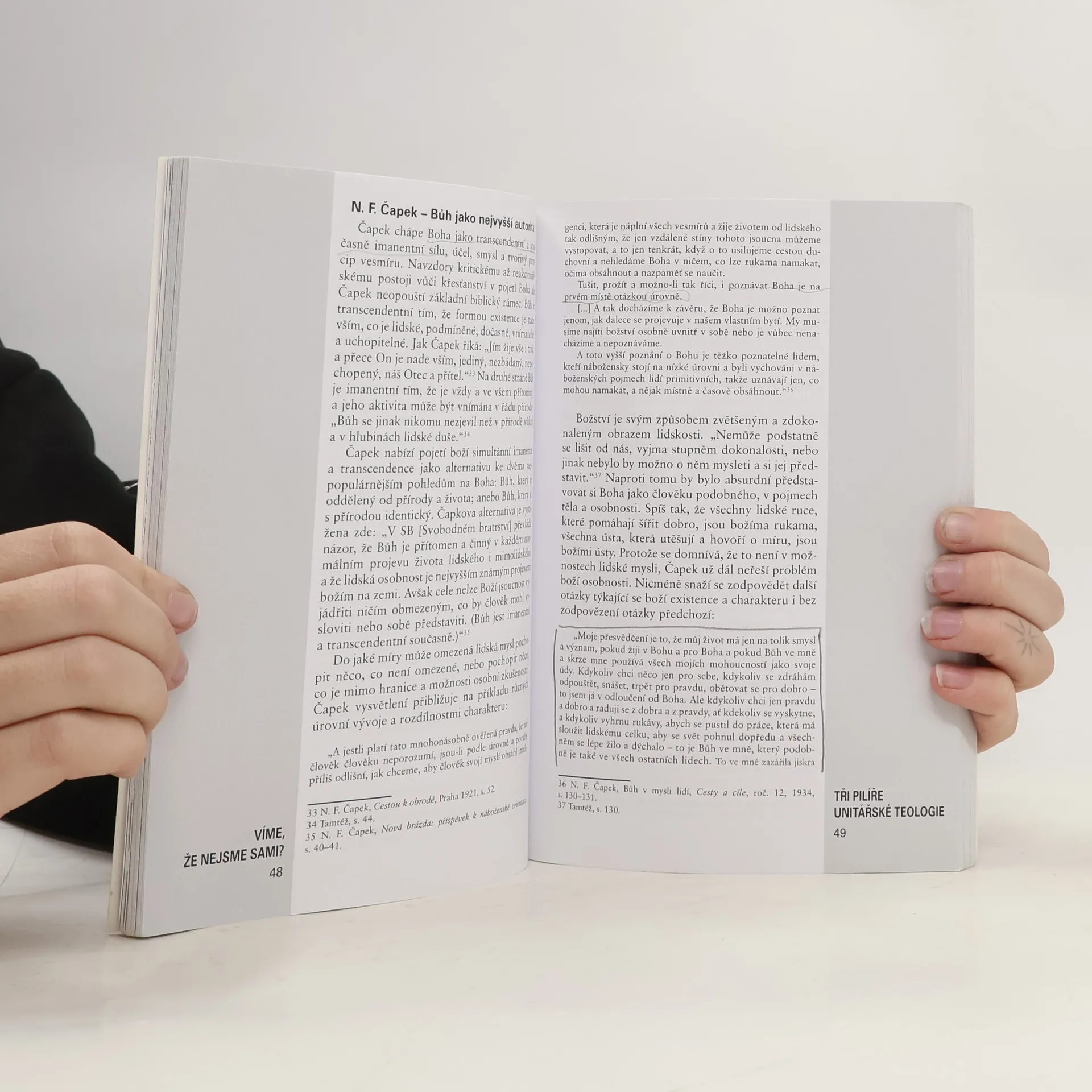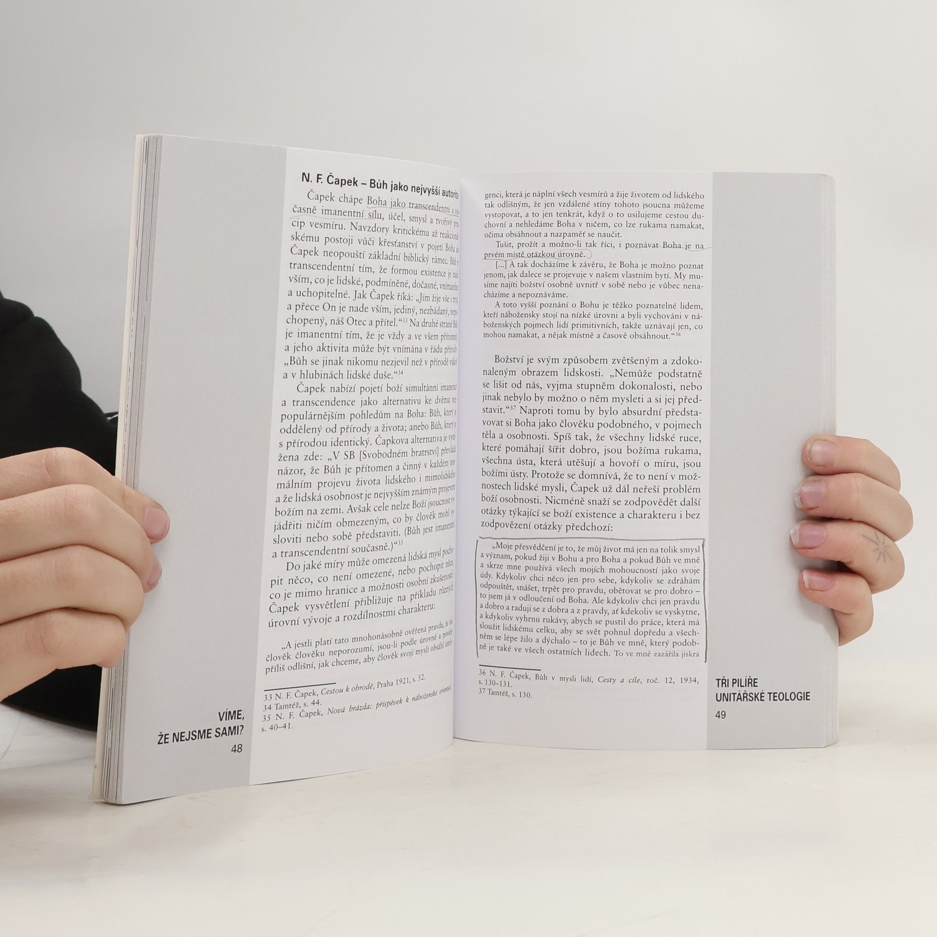 Unitářská tradice disponuje řadou možností, jak pomáhat člověku na jeho duchovní cestě a jak mu asistovat ve zkvalitňování života. V této knize (sborníku z teologického semináře) se editoři soustředí postupně na tři témata: vztah k Bohu, vztah člověka k sobě samému a vztah člověka k druhým. Tato témata jsou vlastně pomyslnými pilíři, na kterých stojí stavba českého unitářství. Kniha vznikla se záměrem vytvořit především studijní, pracovní materiál. Přináší proto podklady ze zdrojů, které jsou jinak skryty v hlubinách archivů, konfrontuje je s otázkami všedního života i duchovní cesty, dává je do vzájemných souvislostí. Má sloužit jako podklad k diskusi, podněcovat uvažování čtenářů, inspirovat k prozkoumání dalších pramenů a literatury, a zejména přispět k připomenutí základní pravdy o životě člověka, že nikdo není sám.