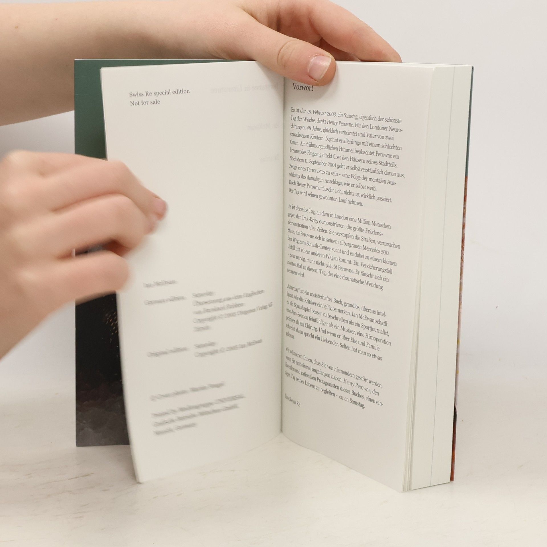 Henry Perowne, 48, ist ein zufriedener Mann: erfolgreich als Neurochirurg, glücklich verheiratet, zwei begabte Kinder. Das einzige, was ihn leicht beunruhigt, ist der Zustand der Welt. Es ist Samstag, und er freut sich auf sein Squashspiel. Doch an diesem speziellen Samstag, dem 15. Februar 2003, ist nicht nur die größte Friedensdemonstration aller Zeiten in London. Perowne hat unversehens eine Begegnung, die ihm jeden Frieden raubt.