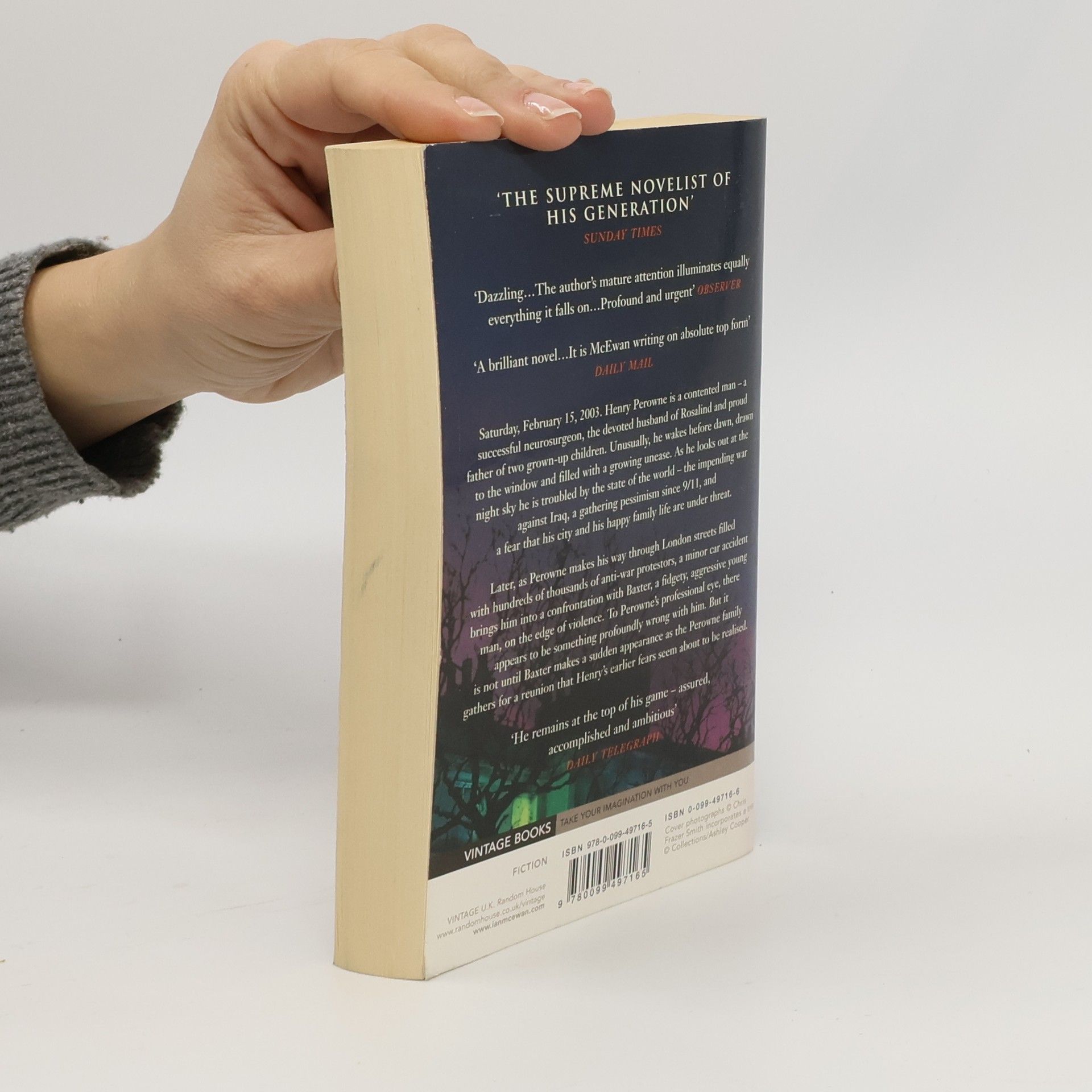 Saturday, February 15, 2003. Henry Perowne is a contented man- a successful neurosurgeon, the devoted husband of Rosalind and proud father of two grown-up children. Unusually, he wakes before dawn, drawn to the window of his bedroom and filled with a grow