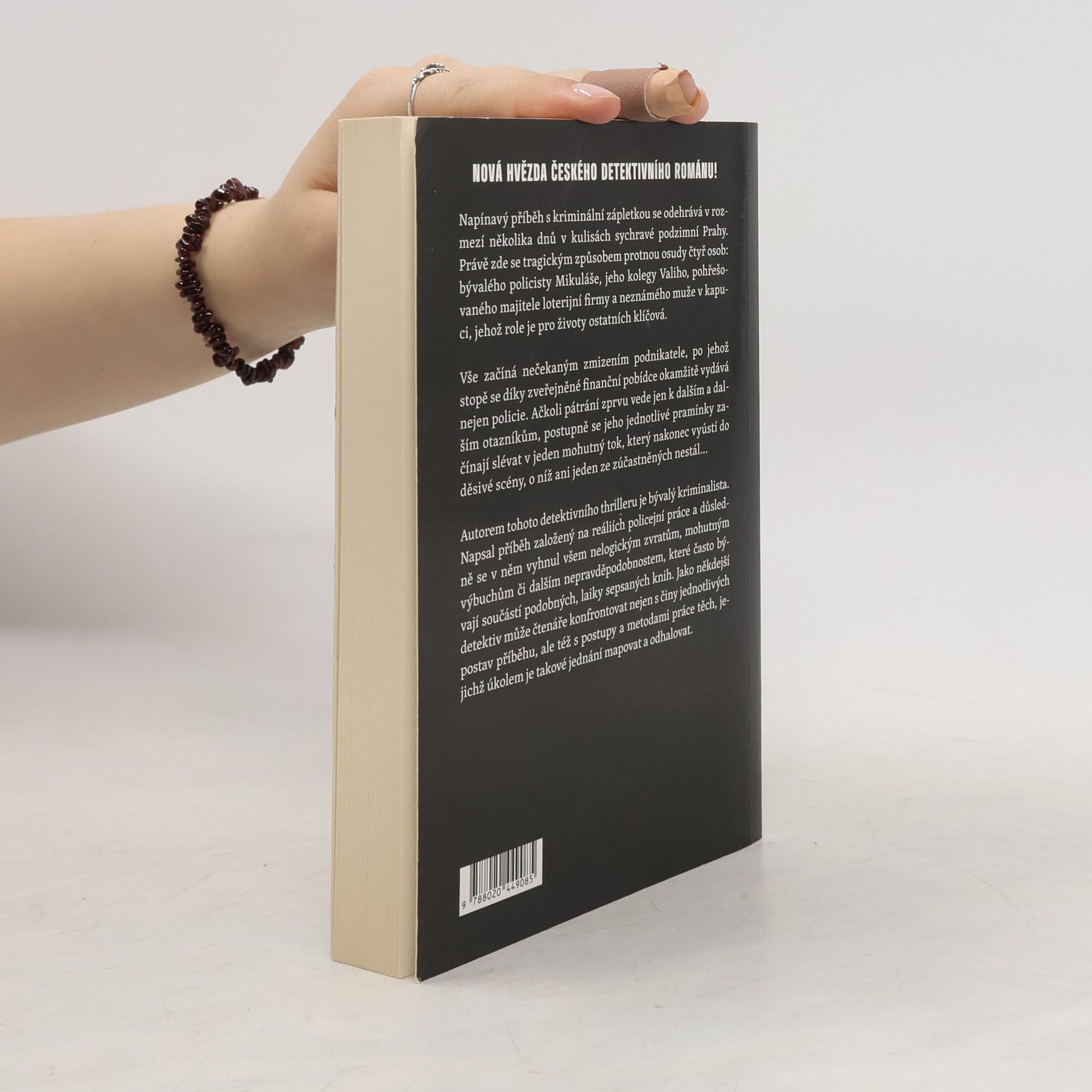 Napínavý příběh s kriminální zápletkou se odehrává v rozmezí několika dnů v kulisách sychravé podzimní Prahy. Právě zde se tragickým způsobem protnou osudy čtyř osob: bývalého policisty Mikuláše, jeho kolegy Valiho, pohřešovaného majitele loterijní firmy a neznámého muže v kapuci, jehož role je pro životy ostatních klíčová. Vše začíná nečekaným zmizením podnikatele, po jehož stopě se díky zveřejněné finanční pobídce okamžitě vydává nejen policie. ačkoli pátrání zprvu vede jen k dalším a dalším otazníkům, postupně se jeho jednotlivé pramínky začínají slévat v jeden mohutný tok, který nakonec vyústí do děsivé scény, o niž ani jeden ze zúčastněných nestál... Autor, píšící pod pseudonymem, je bývalý kriminalista a jeho příběh je založený na reáliích policejní práce. Jako někdejší detektiv může čtenáře konfrontovat nejen s činy jednotlivých postav příběhu, ale též s postupy a metodami práce těch, jejichž úkolem je takové jednání mapovat a odhalovat.