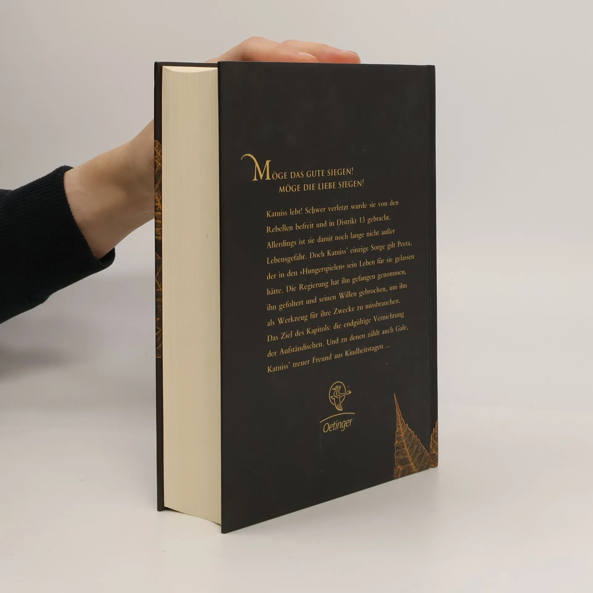 An alternative cover edition for this ISBN can be found here . Schwer verletzt wurde Katniss von den Rebellen befreit und in Distrikt 13 gebracht. Doch ihre einzige Sorge gilt Peeta, der dem Kapitol in die Hände gefallen ist. Die Regierung setzt alle daran, seinen Willen zu brechen, um ihn als Waffe gegen die Rebellen einsetzen zu können. Gale hingegen kämpft weiterhin an der Seite der Aufständischen, und das, zu Katniss' Schrecken, ohne Rücksicht auf Verluste. Als sie merkt, dass auch die Rebellen versuchen, sie für ihre Ziele zu missbrauchen, wird ihr klar, dass sie alle nur Figuren in einem perfiden Spiel sind. Es scheint ihr fast unmöglich, die zu schützen, die sie liebt.