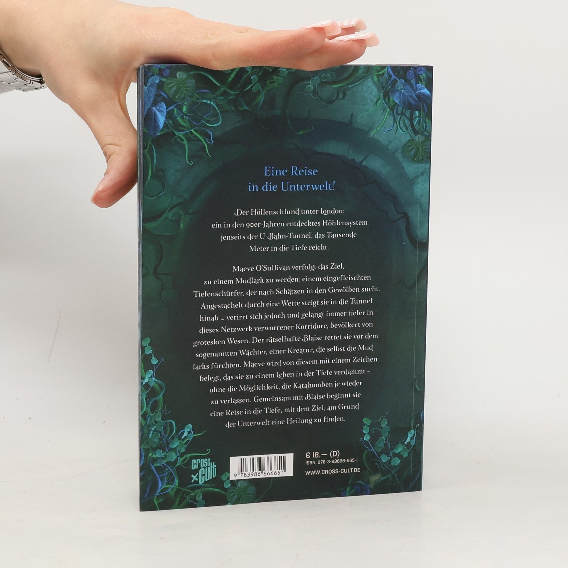 Der Höllenschlund unter London, genannt die Katakomben: ein in den 90er Jahren entdecktes Höhlensystem jenseits der U-Bahn-Tunnel, das Tausende Meter in die Tiefe reicht. Seinen Grund hat man bis heute nicht gefunden. Maeve O’Sullivan studiert an der University of Dublin und verfolgt das Ziel, zu einem Mudlark zu werden: einem eingefleischten Tiefenschürfer, der nach Schätzen in den Gewölben sucht. Angestachelt durch eine Wette steigt sie in die Tunnel hinab … verirrt sich jedoch. In dem Versuch, an die Oberfläche zurückzukehren, gelangt sie immer tiefer in dieses Netzwerk verworrener Korridore, bevölkert von grotesken Wesen wie heimtückischen Schlingpflanzen und wandernden Steinen. Dort begegnet sie dem rätselhaften Blaise. Er rettet sie vor dem sogenannten Wächter, einer Kreatur, die selbst die Mudlarks fürchten. Maeve wird von diesem mit einem Zeichen belegt, das sie zu einem Leben in der Tiefe verdammt – ohne die Möglichkeit, die Katakomben je wieder zu verlassen. Gemeinsam mit Blaise beginnt sie eine Reise in die Tiefe, mit dem Ziel, am Grund der Unterwelt eine Heilung zu finden.