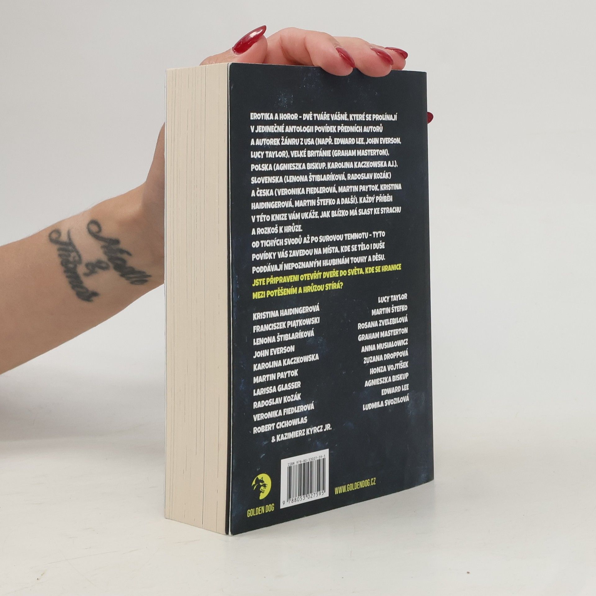 Erotika a horor – dvě tváře vášně, které se prolínají v jedinečné antologii povídek předních autorů a autorek žánru z USA (např. Edward Lee, John Everson, Lucy Taylor), Velké Británie (Graham Masterton), Polska (Agnieszka Biskup, Karolina Kaczkowska a další), Slovenska (Lenona Štiblaríková, Radoslav Kozák) a Česka (Veronika Fiedlerová, Martin Paytok, Kristina Haidingerová, Martin Štefko a další). Každý příběh v této knize vám ukáže, jak blízko má slast ke strachu a rozkoš k hrůze.Od tichých svodů až po surovou temnotu – tyto povídky vás zavedou na místa, kde se tělo i duše poddávají nepoznaným hlubinám touhy a děsu.Jste připraveni otevřít dveře do světa, kde se hranice mezi potěšením a hrůzou stírá?