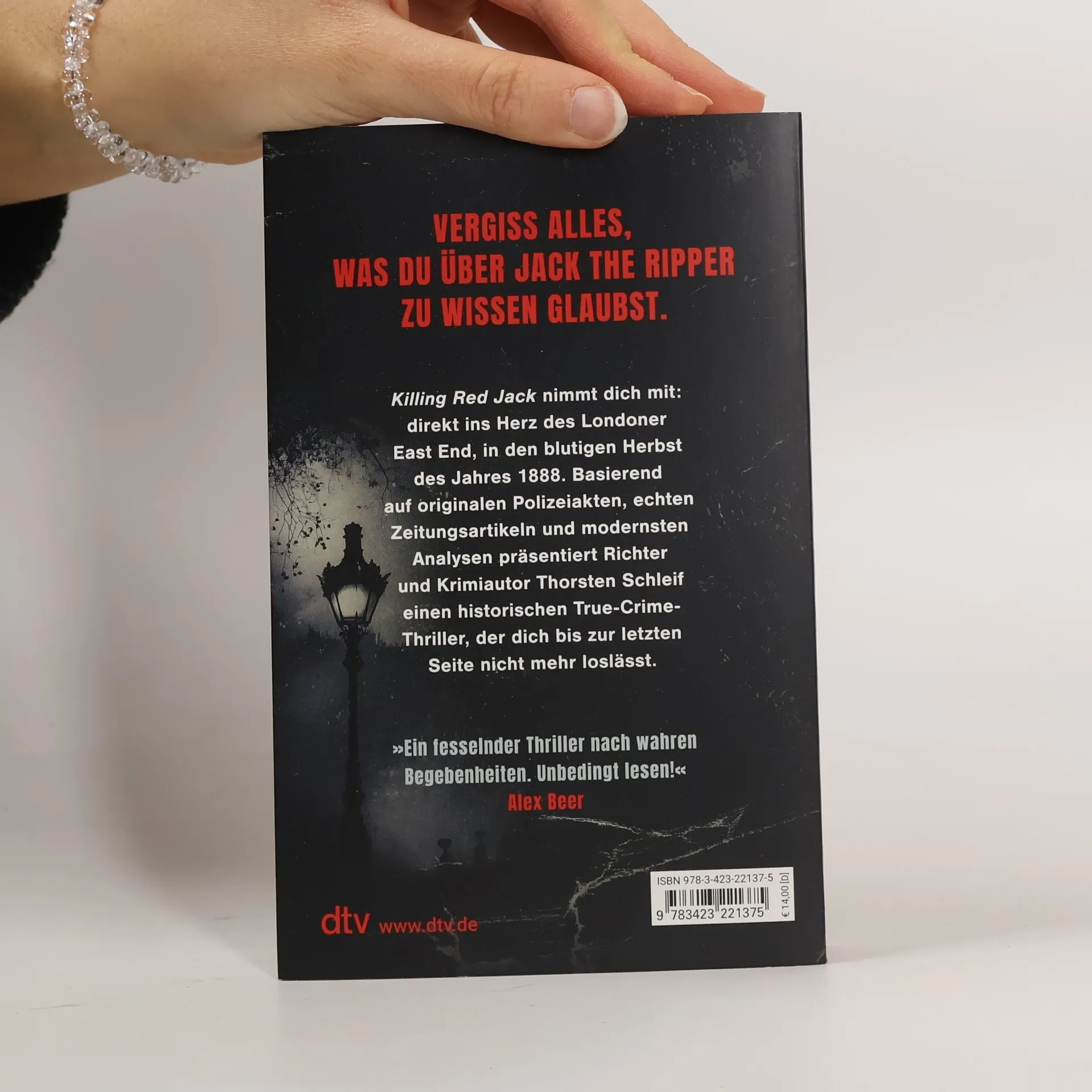 Vergiss alles, was du über Jack the Ripper zu wissen glaubst. Killing Red Jack nimmt dich mit: direkt ins Herz des Londoner East End, in den blutigen Herbst des Jahres 1888. Basierend auf originalen Polizeiakten, echten Zeitungsartikeln und modernsten Analysen präsentiert Richter und Krimiautor Thorsten Schleif einen historischen True Crime Thriller, der dich bis zur letzten Seite nicht mehr loslässt. »Ein fesselnder Thriller nach wahren Begebenheiten. Unbedingt lesen!« Alex Beer London, 1888: Die grausamen Morde an Prostituierten erschüttern die Stadt. Irene Adler, selbst Begleitdame für höhere Kreise, kannte zwei der Opfer persönlich. Sie ist fest entschlossen, den Täter auf eigene Faust jagen. Hilfe erhält sie von William Berger, dem Leibwächter eines ihrer Klienten. Der schweigsame Kriegsveteran verfügt über die notwendigen Fähigkeiten, um der blutigen Spur des „roten Jack“ zu folgen, tief hinein in das tödliche Viertel von Whitechapel. Gemeinsam kommen sie dem dunklen Geheiminis des Rippers immer näher. Doch bald schon stellt sich die Frage: Wer ist der Jäger und wer der Gejagte?