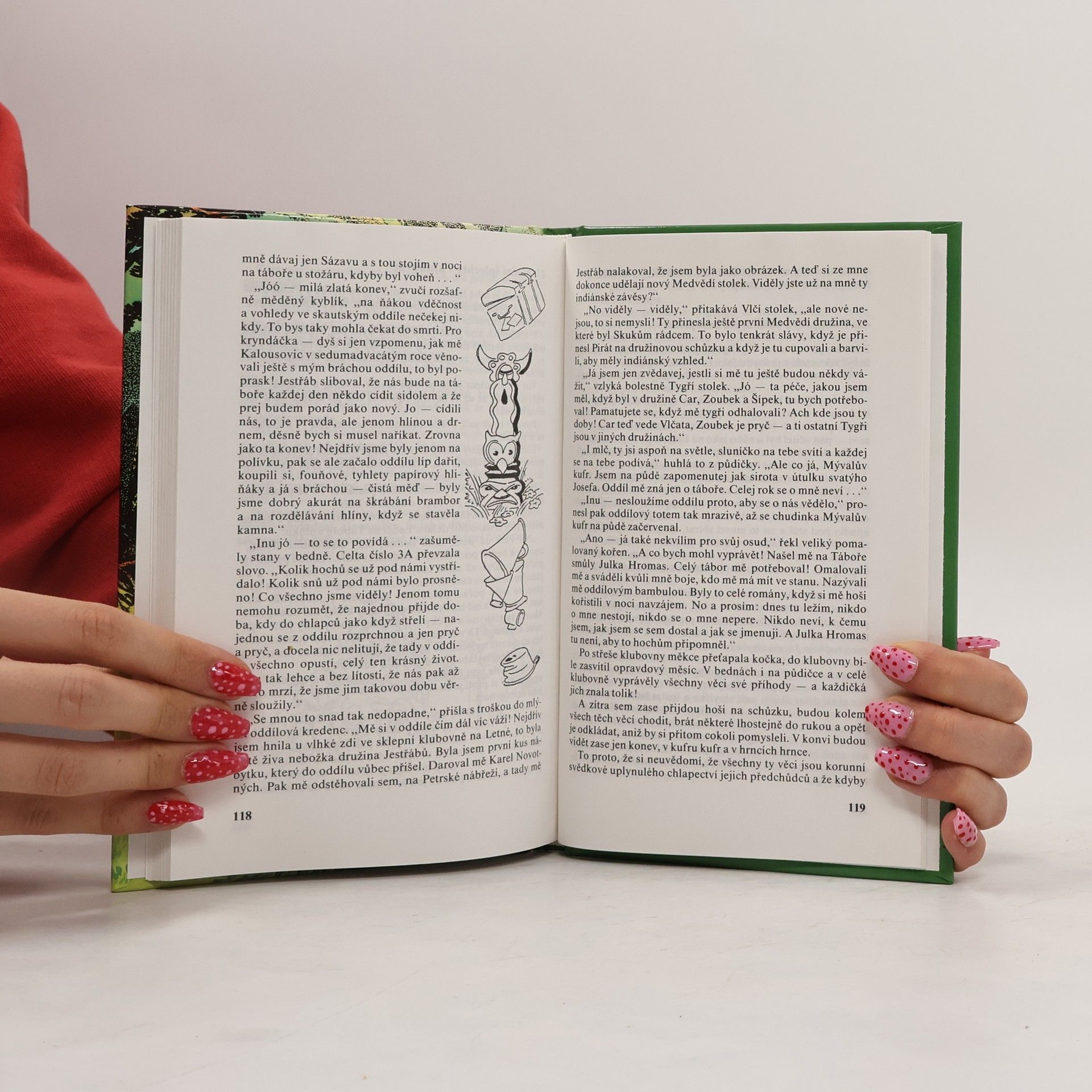 Kniha je souborem na sebe navazujících povídek z let 1927 až 1937. Veselé příběhy chlapců z Foglarova skautského oddílu (O dědečkově kufru, O táborových kamnech, Naše patálie s mravenci, Jak jsme hráli divadlo a další), doplňují vzpomínky na Foglarův dvouměsíční ozdravný pobyt ve Švýcarsku, kde byl po první světové válce s Červeným křížem (Jestřábe, vypravuj, Jedeme do Švýcar a jiné) a další samostatné povídky (např. Koupání na Rejžáku). 4.vydání s původním i ilustracemi K.T.Neumanna.