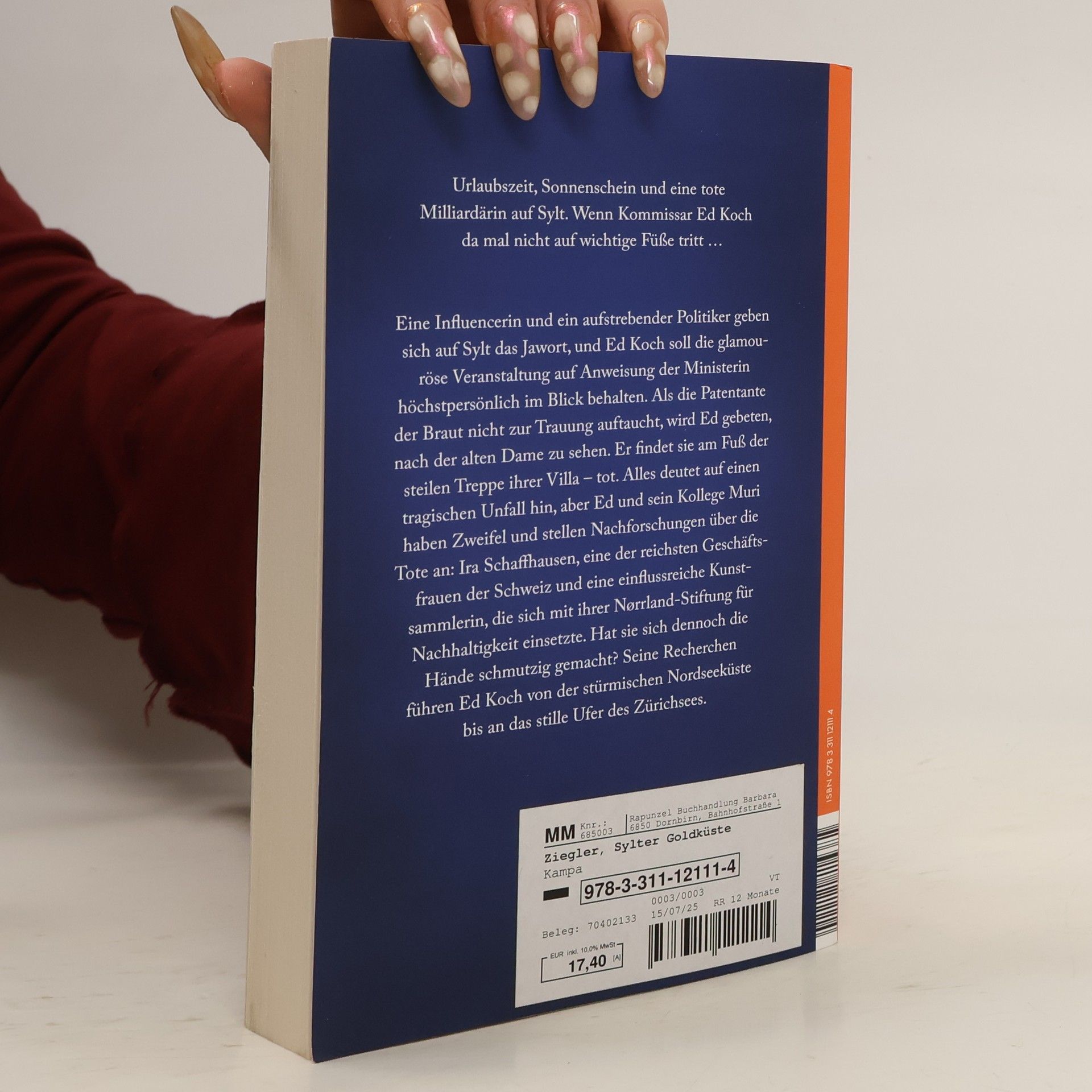 Auf Sylt läuten die Hochzeitsglocken: Eine Influencerin und ein aufstrebender Politiker geben sich öffentlichkeitswirksam das Jawort, und Ed Koch soll die glamouröse Veranstaltung auf Anweisung der Ministerin höchstpersönlich im Blick behalten. Das allein ist schon eine ziemlich weite Auslegung seiner Pflichten als Kriminalkommissar, doch dann bittet die Braut Tilla von Salina ihn auch noch, nach ihrer Patentante zu sehen, die nicht bei der Feier aufgetaucht ist. Ed findet die alte Dame am Fuß der steilen Treppe ihrer Villa – tot. Alles deutet auf einen tragischen Unfall hin, aber Ed und sein Kollege Muri haben Zweifel und stellen Nachforschungen über die Tote an: Als Geschäftsfrau hat Ira Schaffhausen ihr Leben lang Müll zu Gold gemacht – angeblich ganz nachhaltig. Hat sie sich letztlich doch die Hände schmutzig gemacht? Sie war eine der reichsten Frauen der Schweiz, Finanzierin einer umstrittenen Stiftung, einflussreiche Kunstsammlerin, Rabenmutter. An möglichen Motiven scheint es nicht zu mangeln. Um die Puzzleteile zusammenzufügen, muss Ed seine geliebte Nordsee hinter sich lassen und Iras Spuren bis ans Ufer des Zürichsees folgen.