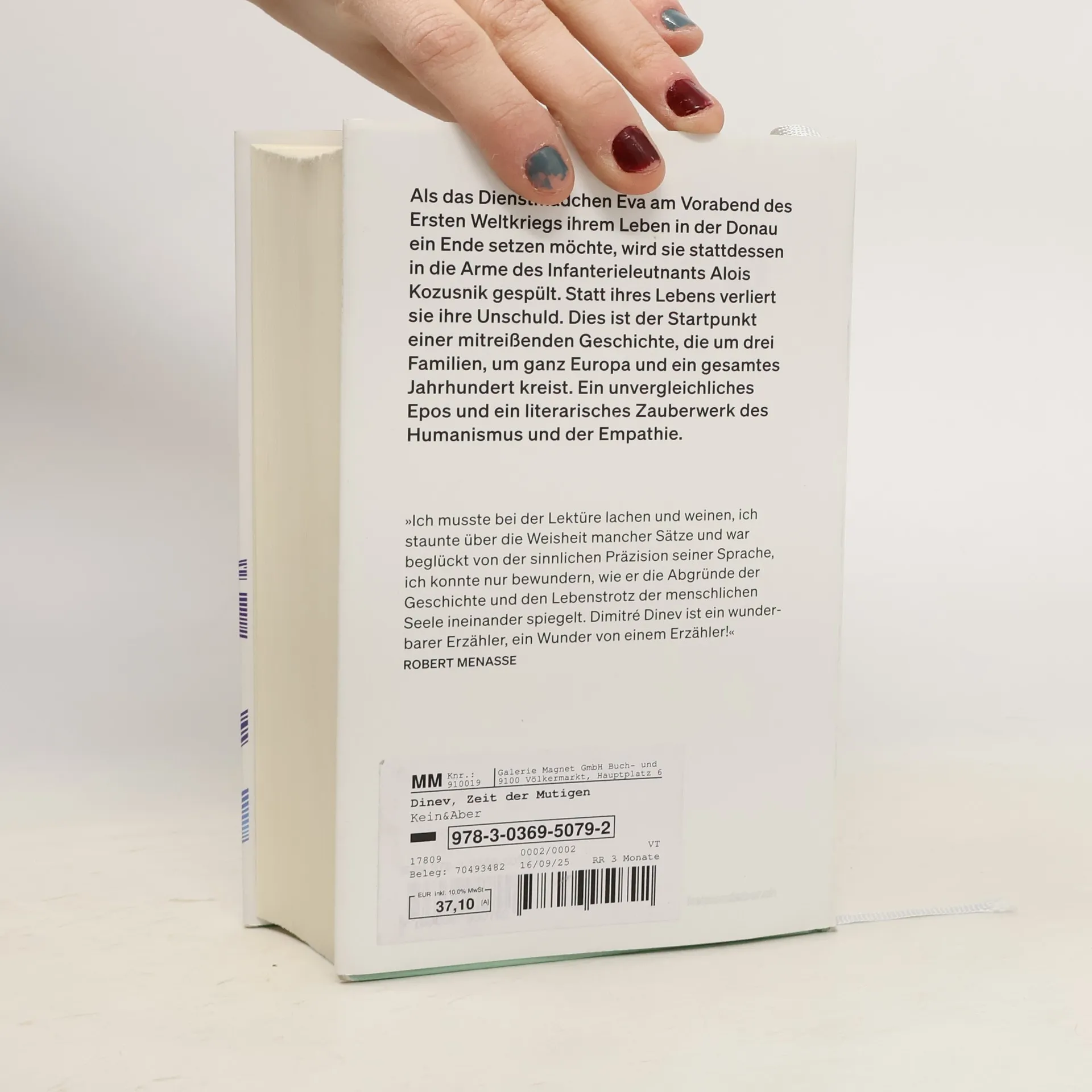 Als das Dienstmädchen Eva am Vorabend des Ersten Weltkriegs ihrem Leben in der Donau ein Ende setzen möchte, wird sie stattdessen in die Arme des jungen Infanterieleutnants Alois Kozusnik gespült. Statt ihres Lebens verliert sie ihre Unschuld. Es ist der Startpunkt einer epischen Geschichte, die sich aus drei großen Erzählsträngen zusammensetzt und sich bis in die heutige Zeit fortspinnt. Was macht den Menschen aus? Wie durchlebt und übersteht er Jahre der Unterdrückung und Gewalt? Wie schafft er es immer wieder, Kraft zu schöpfen, zu hoffen und zu lieben? Dimitré Dinev erkundet in seinem neuen großen Roman die Geschichte Europas und die zentralen Fragen des menschlichen Zusammenlebens und schafft damit ein literarisches Meisterwerk des Humanismus und der Empathie.