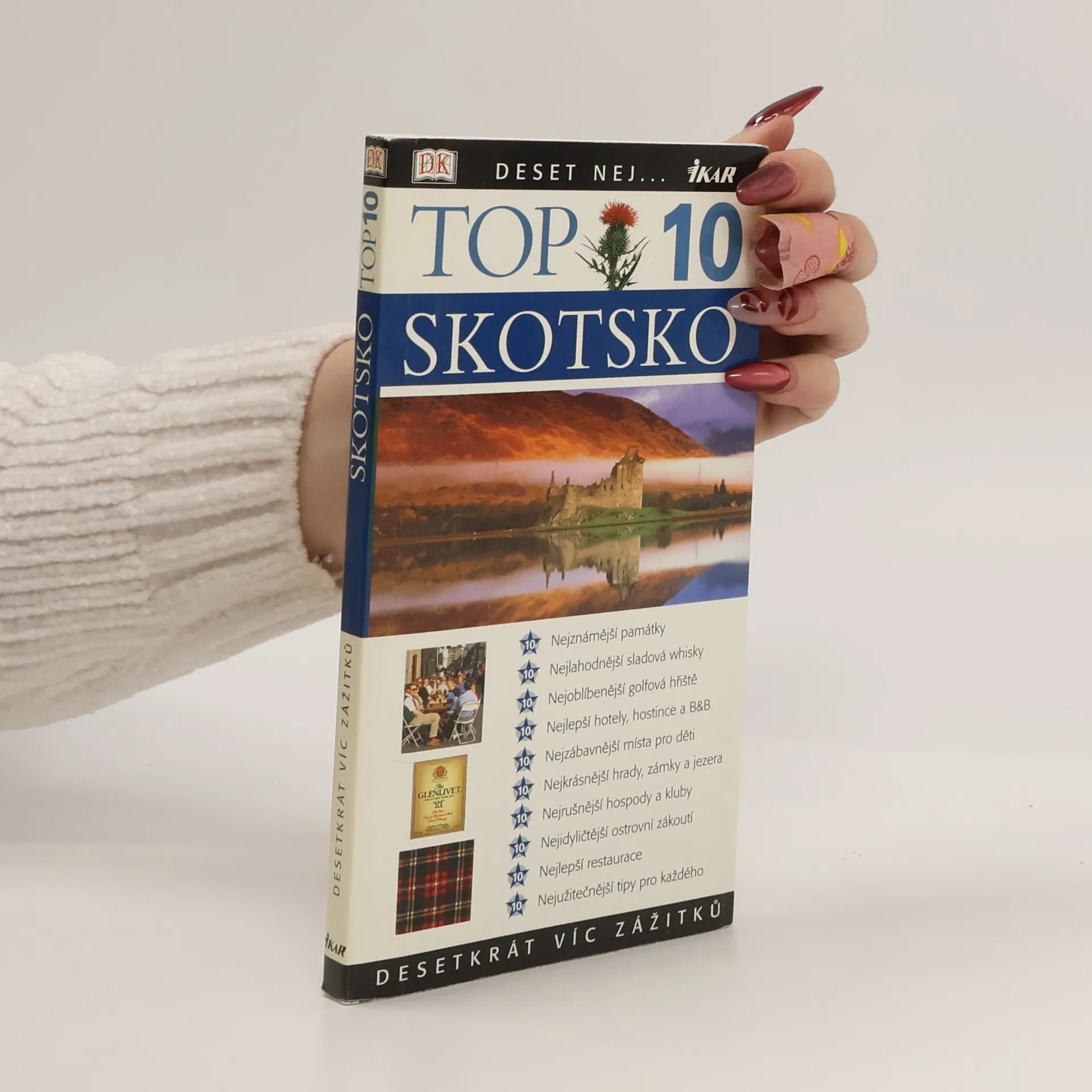 Nejznámější památky, nejlahodnější sladová whisky, nejlepší hotely a restaurace, nejkrásnější hrady a zámky, nejoblíbenější golfová hřiště - tento jedinečný průvodce vám nabízí to nejlepší, co ve Skotsku můžete najít. Jezero Loch Ness, přepychové sídlo Culzean Castle, horský masiv Cairngorms, palírna whisky Glenkinchie, divoké Shetlandy či pozoruhodnosti Edinburghu a mnoho dalších tipů. Dozvíte se i základní informace o tom, kde se pořádá který festival, jaké jsou otvírací doby v obchodech, kde se smí a nesmí kouřit či jaké můžete čekat počasí. zdroj: www.bux.cz