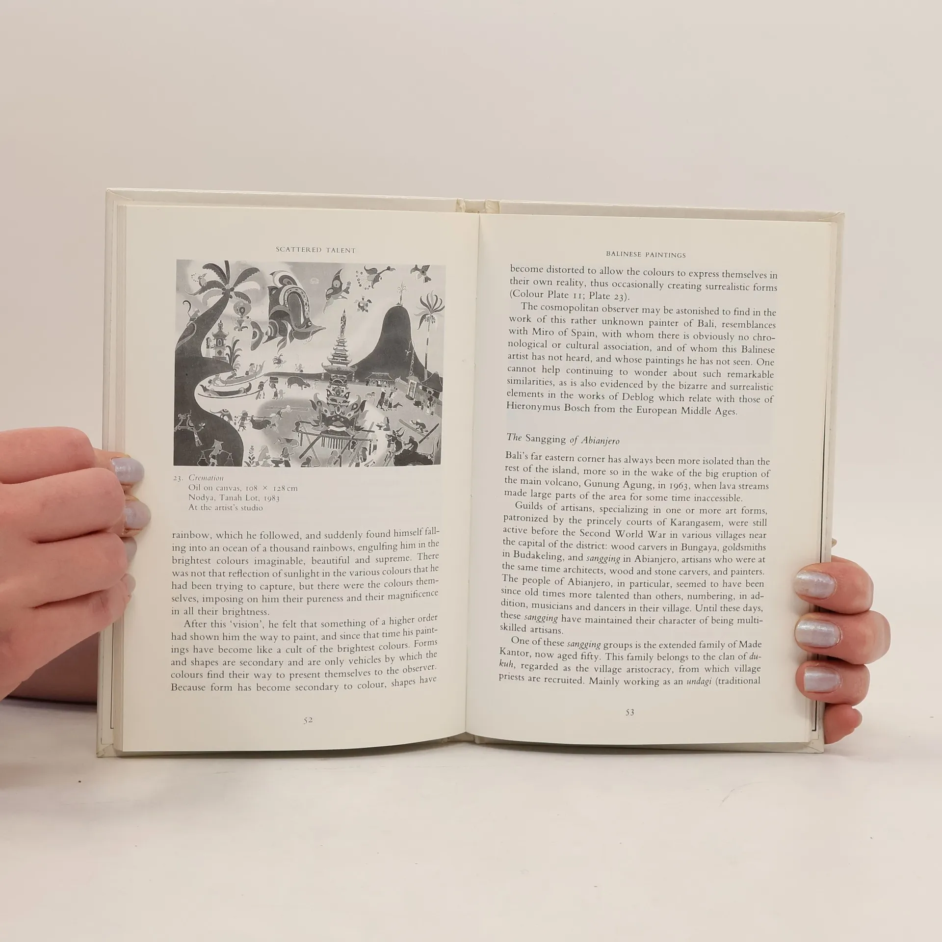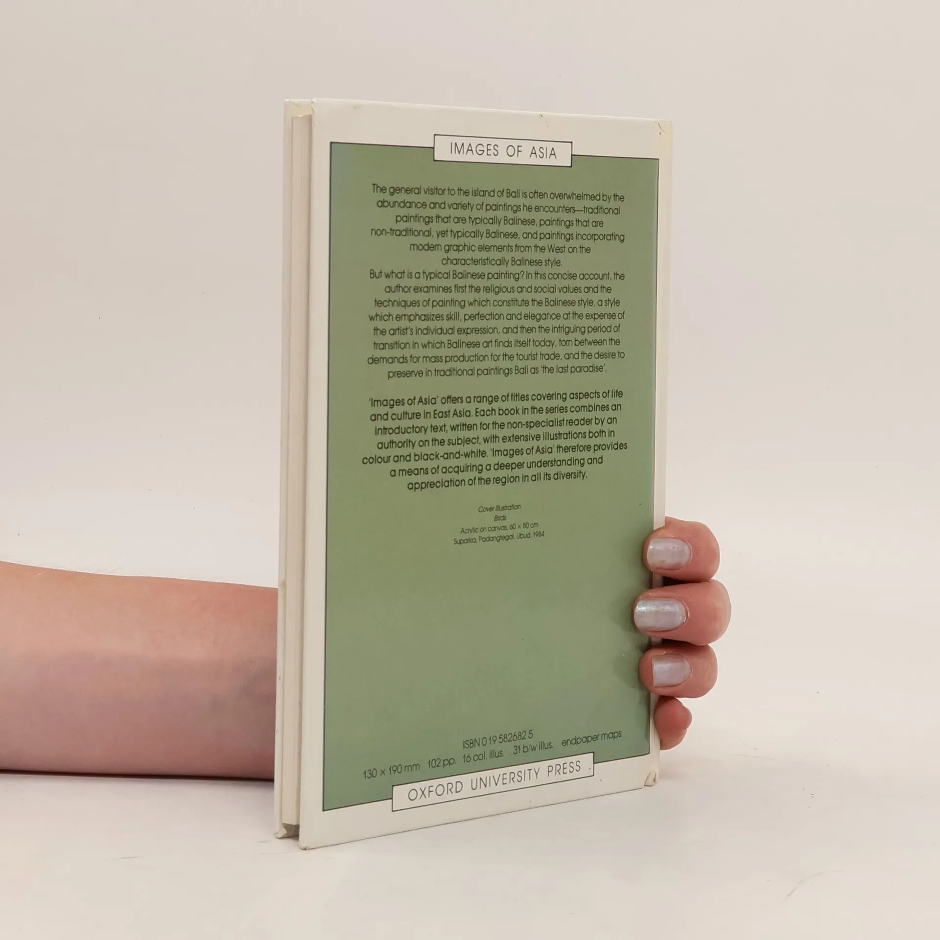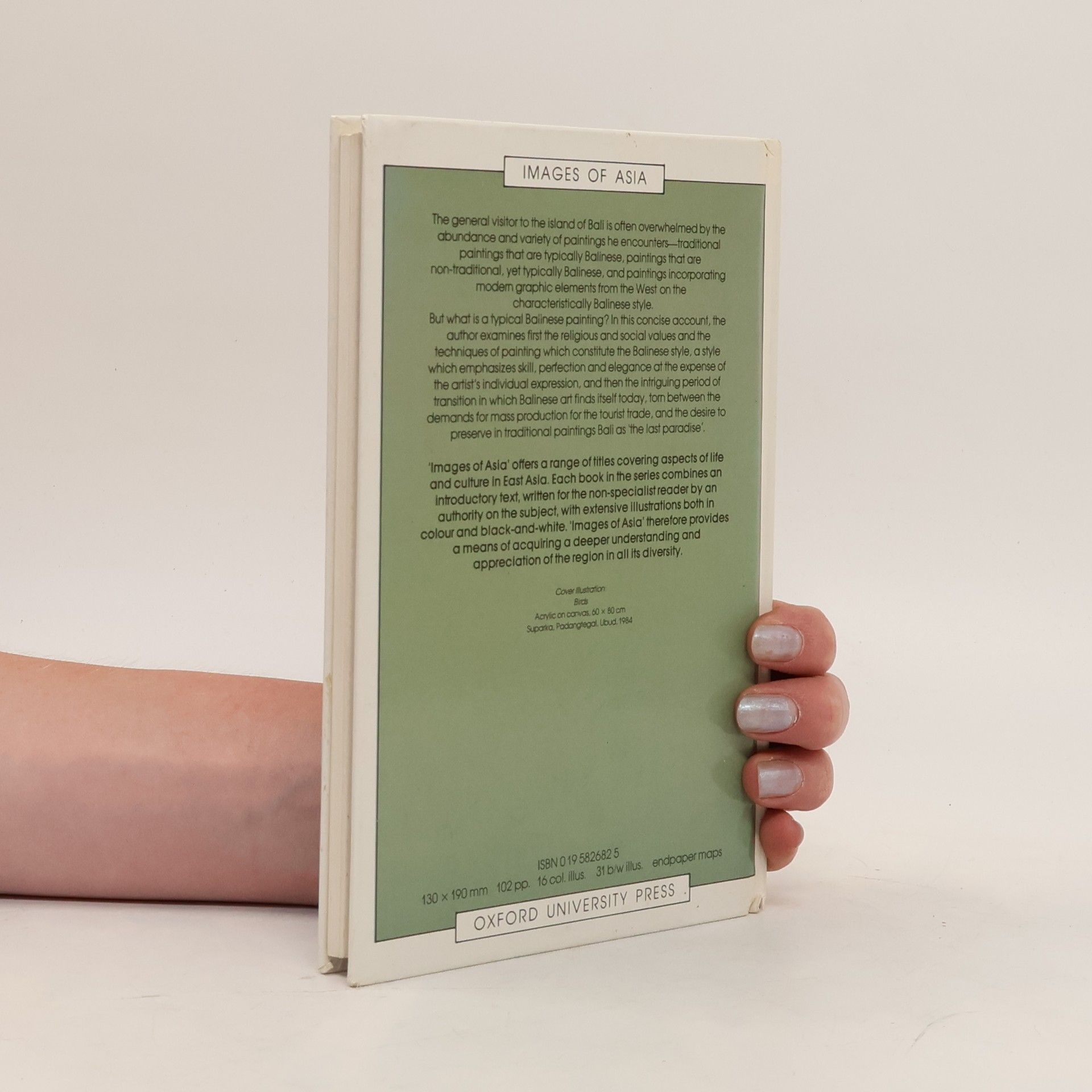 Visitors to the island of Bali are often overwhelmed by the abundance and variety of paintings they encounter: traditional, typically Balinese paintings, non-traditional paintings that are nevertheless also typically Balinese, and paintings in which modern graphic elements from the West are added to or superimposed upon the characteristic Balinese style. But what is a typical Balinese painting? This concise account examines the religious and social values and the painting techniques that constitute the Balinese style, a style emphasizing skill, perfection, and elegance at the expense of individual expression.