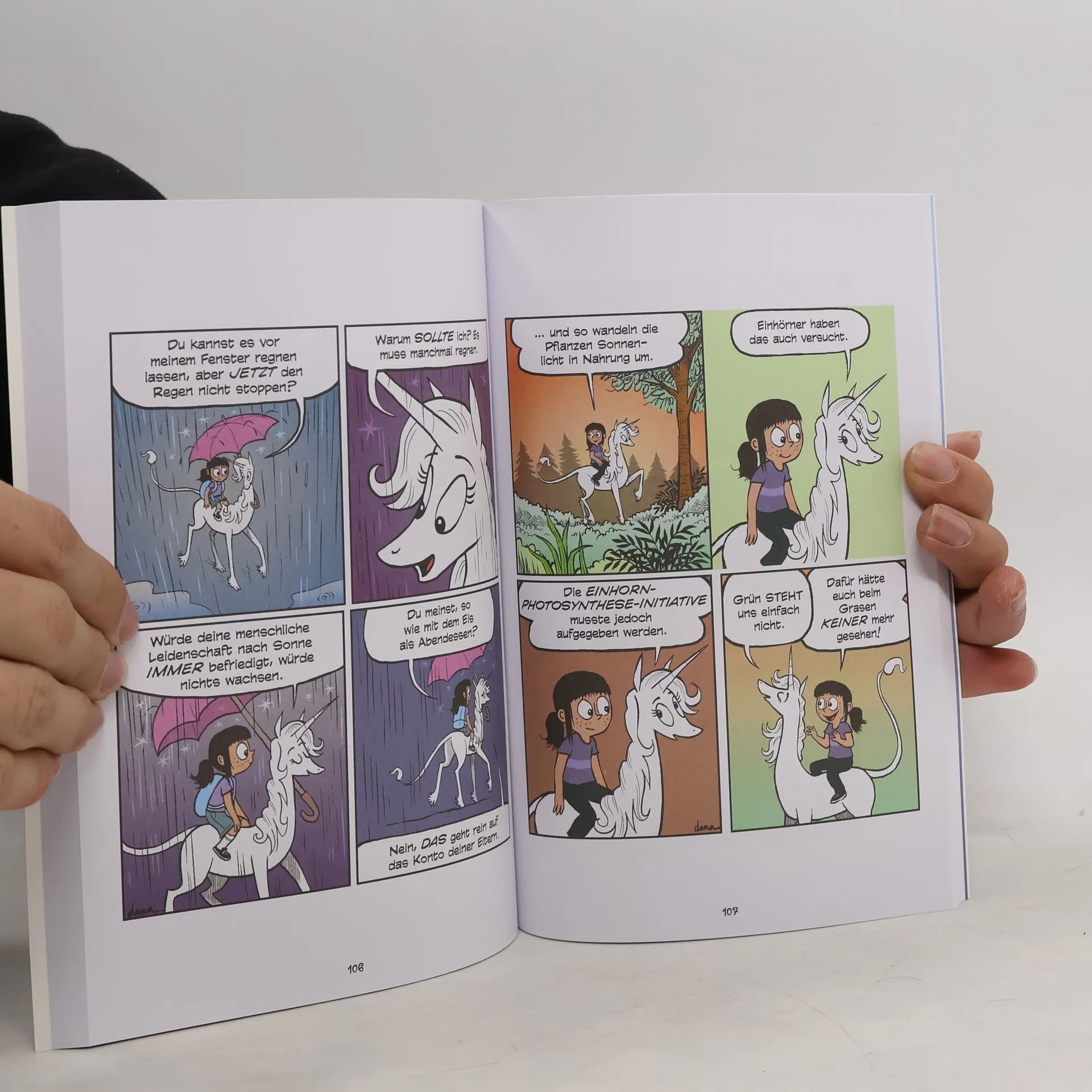 "Könnte es einen schöneren Anblick geben als ein Einhorn in Bowlingschühchen? Phoebe hat es endlich geschafft, ihre beste Freundin Maiglöckchen zum Bowling zu überreden. Dort können beide verschiedene Techniken ausprobieren, die zu unterschiedlichen Ergebnissen führen. Die einzigartige magische Freundschaft zwischen Mensch und Fabelwesen steht auch im Mittelpunkt des neunten Fibi und ihr Einhorn-Bandes, in dem sich die Freunde unter anderem dem Songwriting, Webdesign und einem Besuch im exklusiven Einhorn Sommercamp „Schimmerhorn“ widmen, wie heißt es doch so schön: Wenn es hart auf hart kommt, hilft Funkeln!"