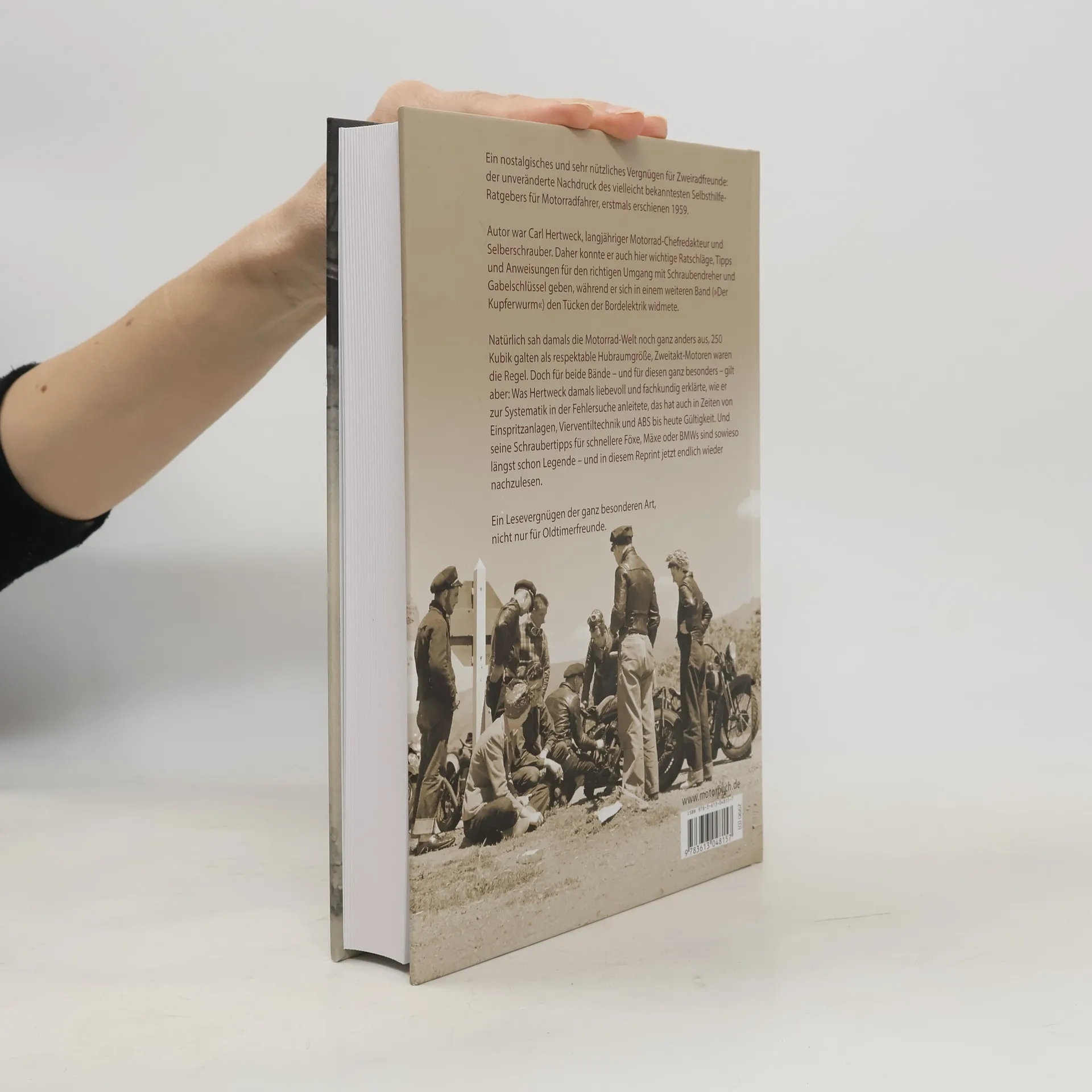 In den 1950er-Jahren erschien in der Zeitschrift MOTORRAD die Artikelserie »Mach's doch selber«, auf der dieses Buch basiert. Frustriert vom Mangel an guten Fachwerkstätten, war es dem Schrauber und Journalist Carl Hertweck ein Anliegen, seinen Lesern Hilfe zur Selbsthilfe zu bieten. In launigem, überaus unterhaltsamem Stil und mit hoher Sachkompetenz beschreibt Carl Hertweck, wie »selbst absolute Handwerkslaien, Buchhalter, Pastöre und Strumpfvertreter« binnen kurzem lernen, die Leistung ihres Motorrads zu steigern, »einen Vergaser und eine Zündung richtig einzustellen, einen Kolben vollgasfest hinzubekommen und einen Motor auf die Spitzenleistung zu bringen.«