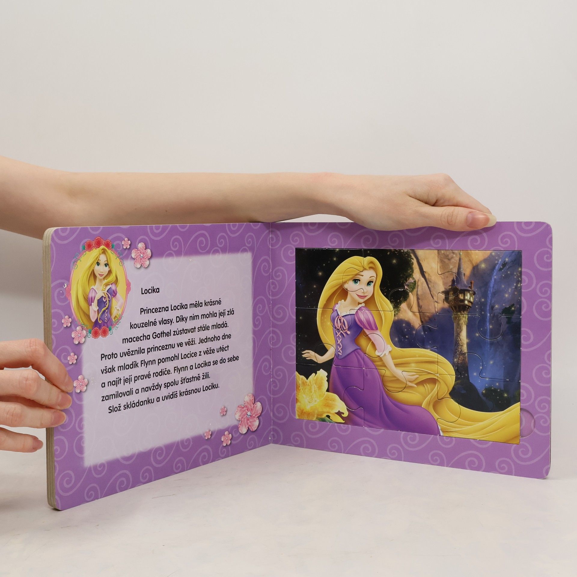 Knížka devítidílných skládaček na motivy Disney filmů o princeznách pro nejmenší děti.