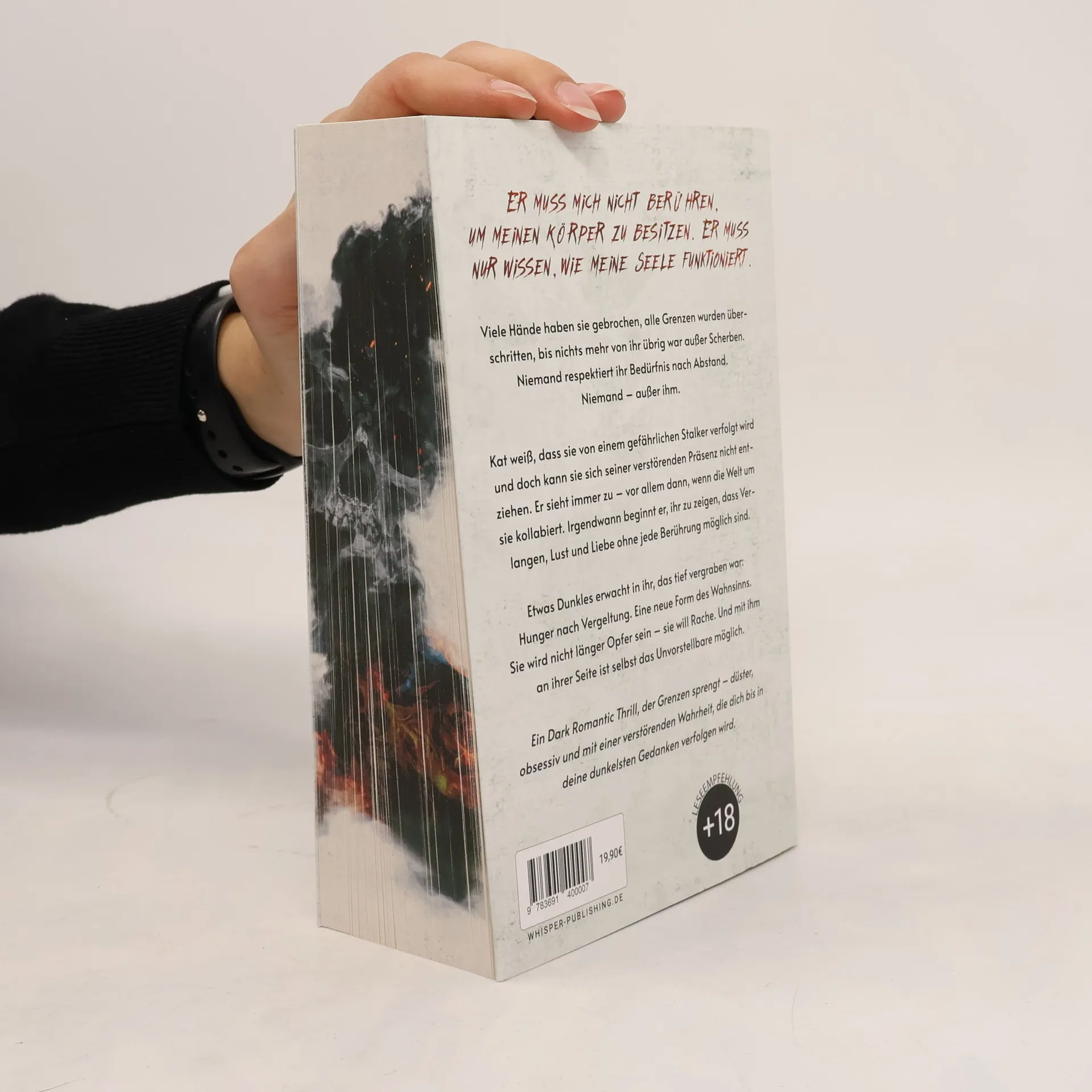 +18 Jahre! Er muss mich nicht berühren, um meinen Körper zu besitzen. Er muss nur wissen, wie meine Seele funktioniert. Viele Hände haben sie gebrochen, alle Grenzen wurden überschritten, bis nichts mehr von ihr übrig war außer Scherben. Niemand respektiert ihr Bedürfnis nach Abstand. Niemand – außer ihm. Kat weiß, dass sie von einem gefährlichen Stalker verfolgt wird und doch kann sie sich seiner verstörenden Präsenz nicht entziehen. Er sieht immer zu – vor allem dann, wenn die Welt um sie kollabiert. Irgendwann beginnt er, ihr zu zeigen, dass Verlangen, Lust und Liebe ohne jede Berührung möglich sind. Etwas Dunkles erwacht in ihr, das tief vergraben war: Hunger nach Vergeltung. Eine neue Form des Wahnsinns. Sie wird nicht länger Opfer sein – sie will Rache. Und mit ihm an ihrer Seite ist selbst das Unvorstellbare möglich. Ein Dark Romantic Thrill, der Grenzen sprengt – düster, obsessiv und mit einer verstörenden Wahrheit, die dich bis in deine dunkelsten Gedanken verfolgen wird.