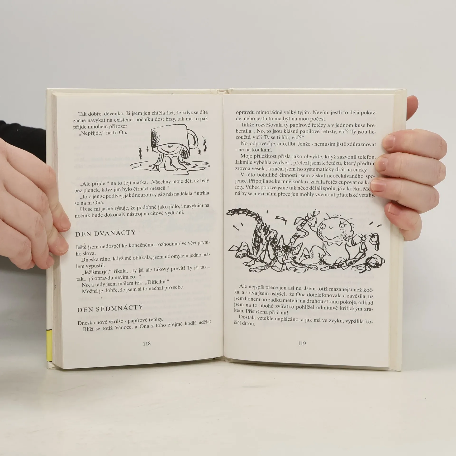 Napadlo Vás někdy, když se láskyplně skláníte nad postýlkou svého robátka, že ten spící andílek je bytost nevypočitatelná, ba dokonce záludná? Co se vám snaží sdělit svým bubláním, vrkáním či vřískotem? Proč vám šermuje před očima svýma buclatýma ručkama? A co má znamenat jeho první triumfální úsměv? Tento necenzurovaný deníček lidského mláděte vám sice neposkytne žádné praktické rady, jak si počínat ve výchovné tísni, zato brzy pochopíte, kdo je váš potomek... a že vás má v hrsti.