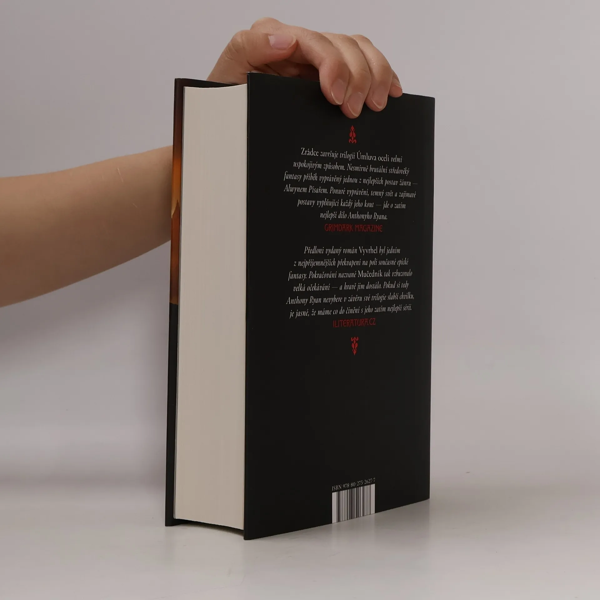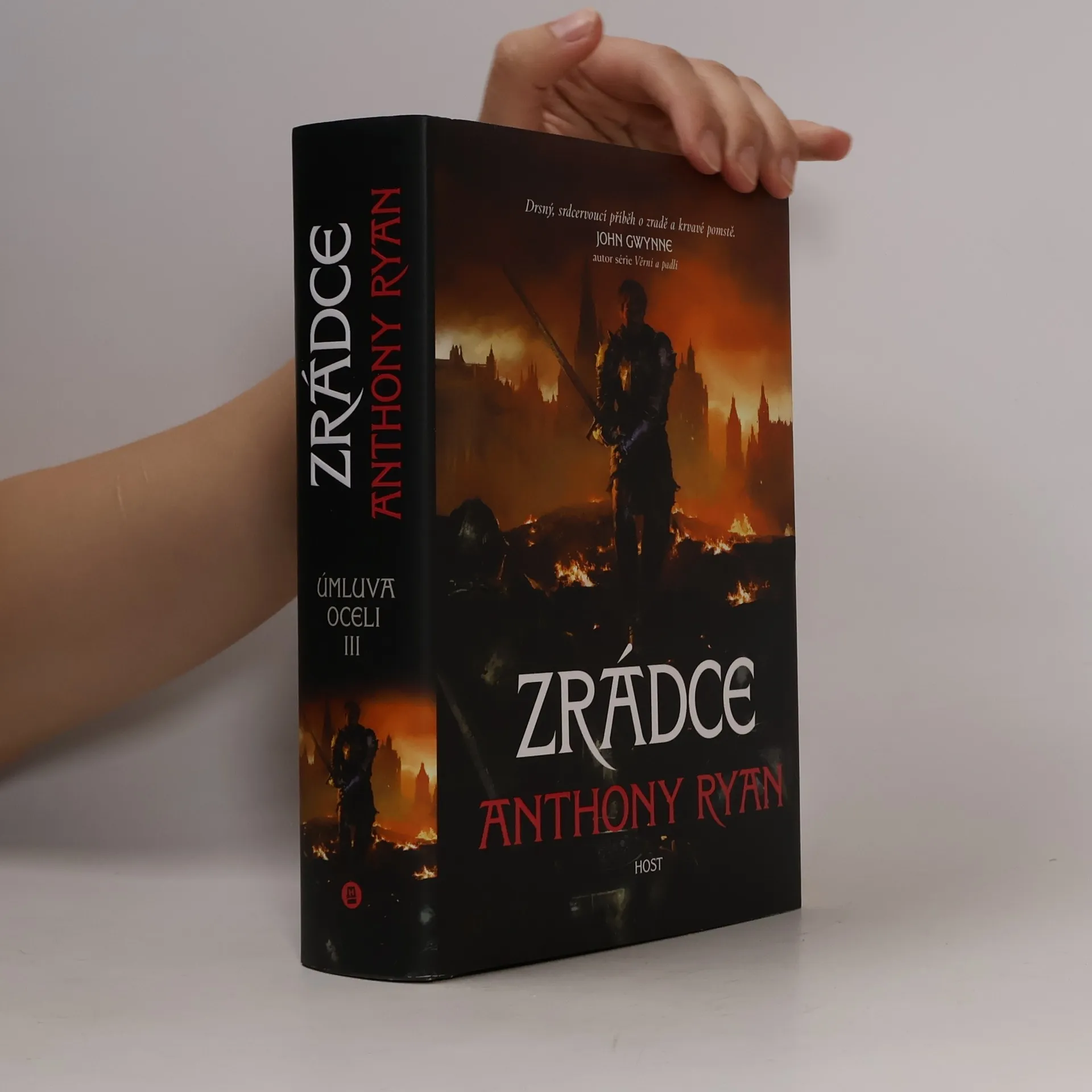 Závěrečný díl drsné a nelítostné trilogie Úmluva oceli od mistra epické fantasy Anthonyho Ryana Alwyna Písaře čeká rozhodující bitva a těžká volba mezi loajalitou a svědomím. Alwyn urazil velký kus cesty. Narodil se jako levoboček v bordelu a nikdy nepoznal vlastního otce, vyrostl v lese mezi zbojníky a nyní je rytířem a nejbližším rádcem lady Evadine Courlainové. Společně vybojovali již bezpočet bitev a pomohli obnovit řád v roztříštěném království. Jenže Evadine už není tou ženou, kterou Alwyn znal. Puritánská zuřivost v ní čím dál častěji nahrazuje laskavou víru a Alwyn začíná pochybovat o jejích skutečných motivech. Schyluje se k poslední, rozhodující bitvě a Alwynovo svědomí svádí lítý boj s jeho srdcem. Teď se bude muset doopravdy rozhodnout, na čí straně stojí.