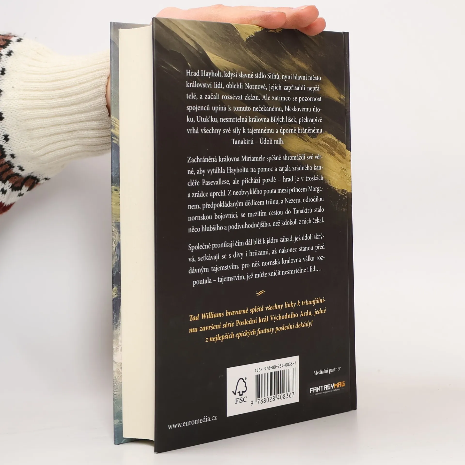 Hrad Hayholt, kdysi slavné sídlo Sithů, nyní hlavní město království lidí, oblehli Nornové, jejich zapřisáhlí nepřátelé, a začali rozsévat zkázu. A zatímco pozornost spojenců se upíná k tomuto nečekanému, bleskovému útoku, Utuk’ku, nesmrtelná královna Bílých lišek mění strategii a vrhá všechny své síly k tajemnému a úporně bráněnému Tanakirú – Údolí mlh. Zachráněná královna Miriamele spěšně shromáždí své věrné, aby vytáhla Hayholtu na pomoc a zajala zrádného kancléře Pasevallese, ale přichází pozdě – hrad je v troskách a zrádce uprchl. Z neobvyklého pouta mezi princem Morganem, předpokládaným dědicem trůnu, a Nezeru, odrodilou nornskou bojovnicí, se cestou do Tanakirú stalo něco hlubšího a podivuhodnějšího, než kdokoli z nich čekal. Pronikají čím dál blíž k jádru záhad, jež údolí skrývá, setkávají se s divy i hrůzami, až nakonec stanou před dávným tajemstvím, pro něž nornská královna válku rozpoutala – tajemstvím, jež může zničit nesmrtelné i lidi. Ani to však zdaleka nejsou všichni hráči toho velkolepého finále, kterým Tad Williams s přehledem znamenitého vypravěče završuje sérii Poslední král Východního Ardu.