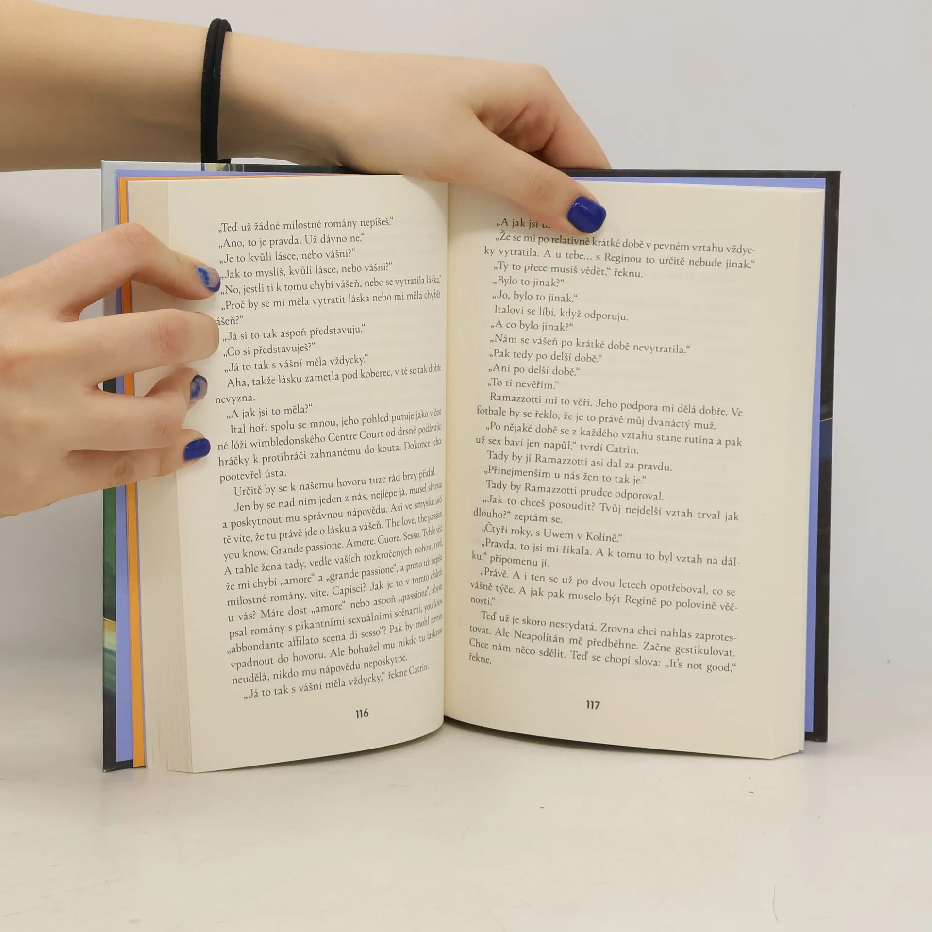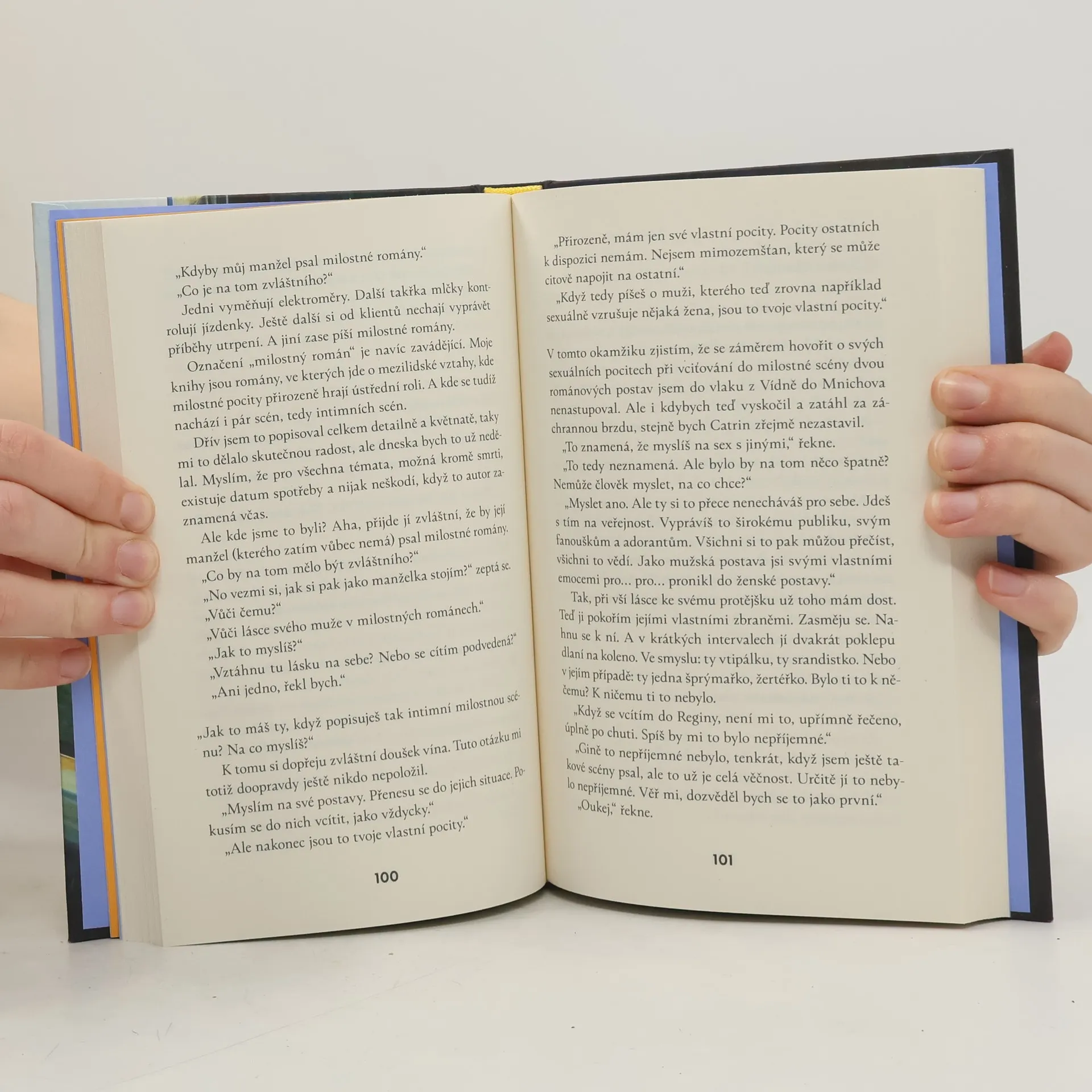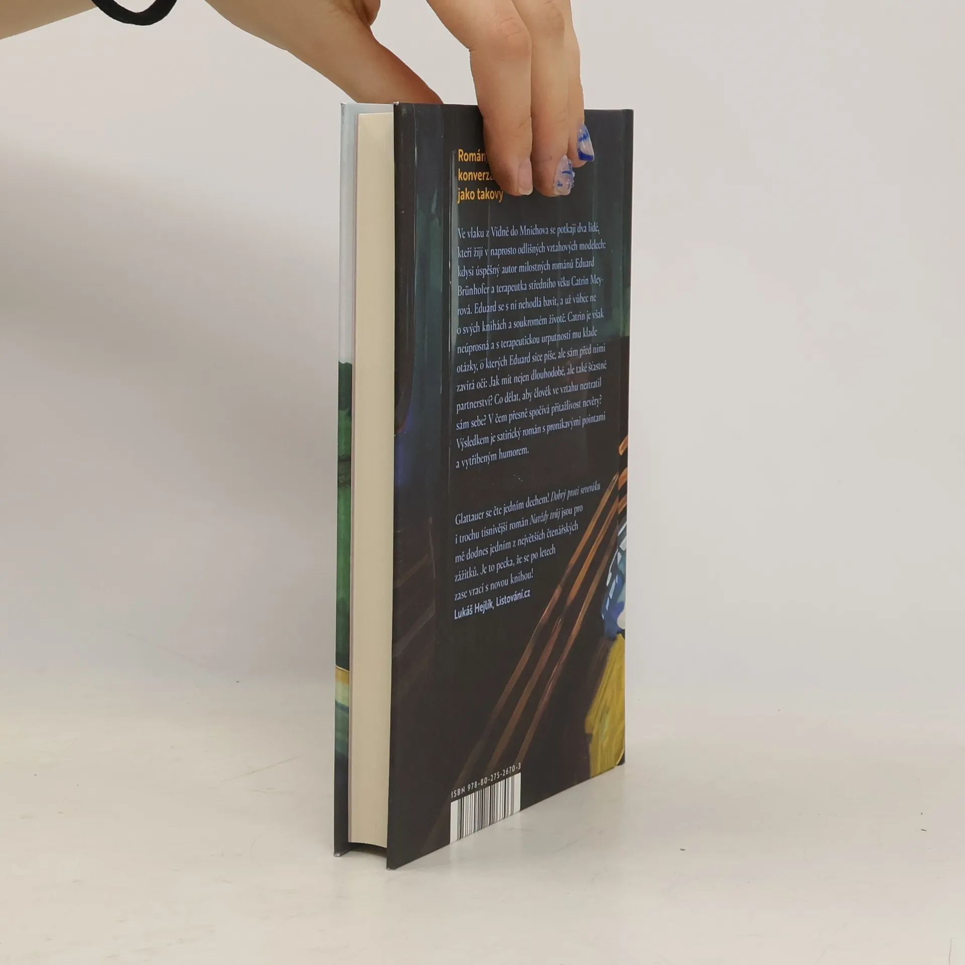 Román, který oslavuje umění konverzace, lásku — a život jako takový Ve vlaku z Vídně do Mnichova se náhodou potkají dva lidé, kteří žijí v naprosto odlišných vztahových modelech: kdysi úspěšný autor milostných románů Eduard Brünhofer a terapeutka středního věku Catrin Meyrová. Eduard se s ní nehodlá bavit, a už vůbec ne o svých knihách a milostném životě. Catrin je však neúprosná a s terapeutickou urputností mu klade otázky, o kterých Eduard sice píše, ale sám před nimi zavírá oči: Jak spolu zůstat nejen dlouho, ale také šťastní? Co dělat, aby člověk ve vztahu neztratil sám sebe? V čem přesně spočívá přitažlivost nevěry? Výsledkem je satirický román s pronikavými pointami a vytříbeným humorem.