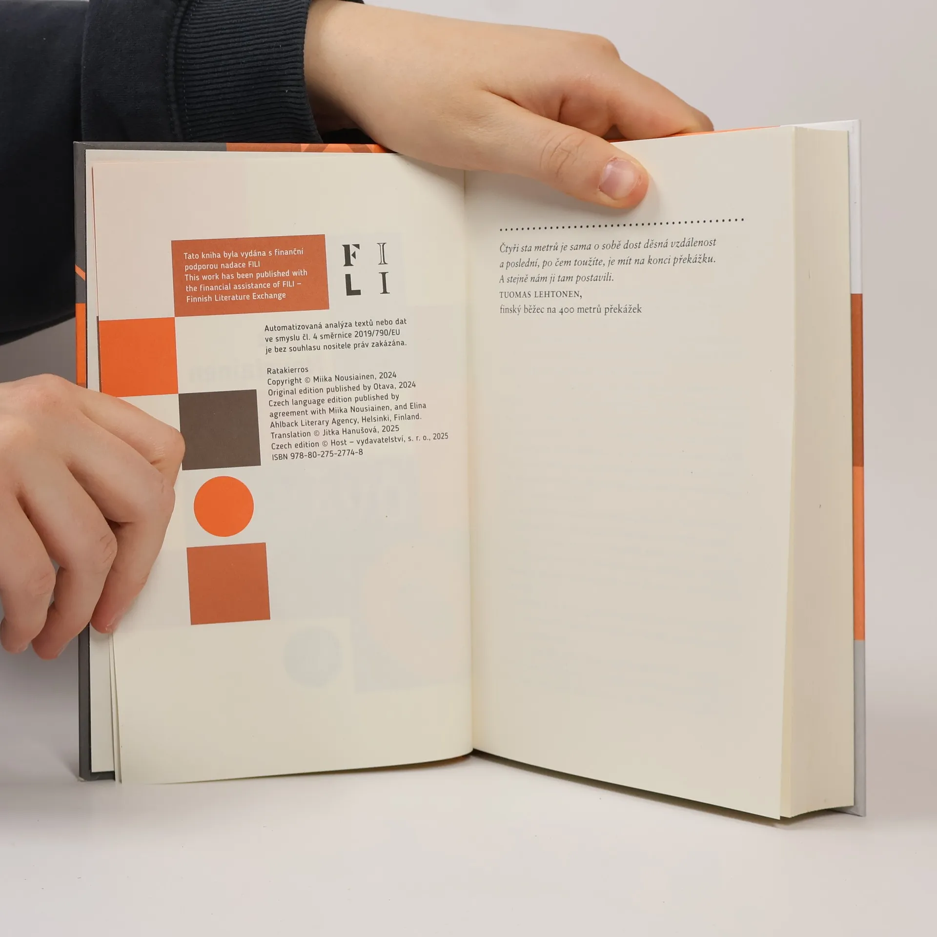 Autobiografický román o cestě za svým cílem, lemované lakonickým humorem Po čem muži touží, když jim táhne na padesát? Po vůni benzínu a větru ve vlasech na silné motorce nebo jachtě? Uhánět s životem o závod, aby jim neutekl? Miika nemá řidičák ani nejmenší chuť být rebelem, a tak se rozhodne začít běhat, zhubnout skoro dvacet kilo, obout tretry a zúčastnit se opravdového závodu. Může se z rozseděného spisovatele stát vyšvihaný sprinter? Jak moc to bolí? Co všechno ho pohání vpřed? A podaří se mu překonat finský rekord v běhu na 400 metrů v jeho věkové kategorii, jak si předsevzal? V autobiograficky laděném románu Miika Nousiainen ukazuje, že si umí dokonale utahovat nejen z finské povahy, jak to známe z jeho předchozích knih, ale i sám ze sebe.