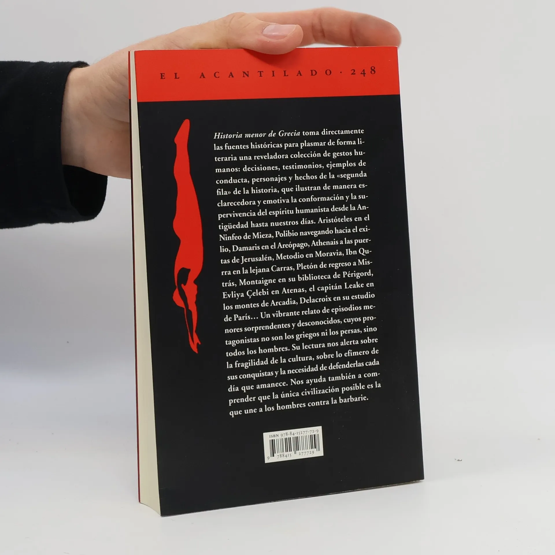 "'Historia menor de Grecia' toma directamente las fuentes históricas para plasmar de forma literaria una reveladora colección de gestos humanos: decisiones, testimonios, ejemplos de conducta, personajes y hechos de la ±segunda fila» de la historia, que ilustran de manera esclarecedora y emotiva la conformación y la supervivencia del espíritu humanista desde la Antigüedad hasta nuestros días."_Contracub