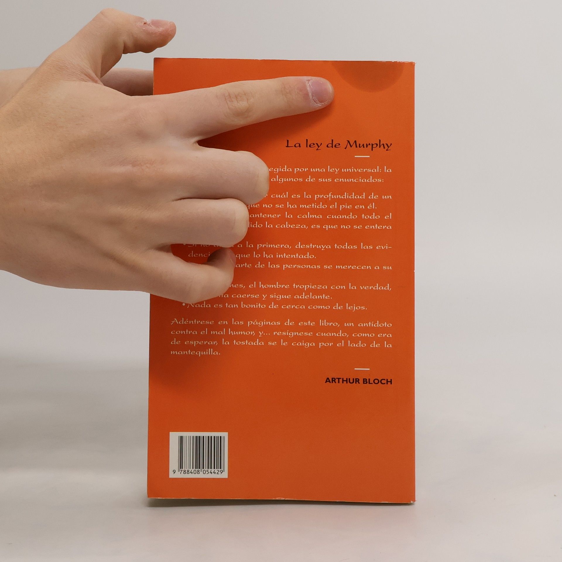 La vida cotidiana está regida por una ley universal: La ley de Murphy. He aquí algunos de sus enunciados: No se puede saber cuál es la profundidad de un charco hasta que no se ha metido el pie en él. Si consigue mantener la calma cuando todo el mundo ha perdido la cabeza, es que no se entera del problema. Si no atina a la primera, destruya todas las evidencias de que lo ha intentado. La mayor parte de las personas se merecen a su pareja. En ocasiones, el hombre tropieza con la verdad, pero evita caerse y sigue adelante. Nada es tan bonito de cerca como de lejos. Adéntrese en las páginas de este libro, un antídoto contra el mal humor, y... resígnese cuando, como era de esperar, la tostada se le caiga por el lado de la mantequilla.