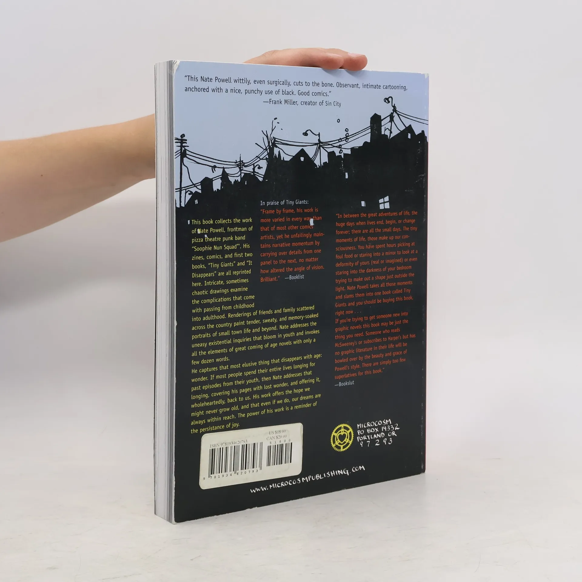 Nate Powell (March, Swallow Me Whole, Soophie Nun Squad, Any Empire) recently won the Eisner for "best original graphic novel" and was the first graphic novel nominated for the LA Times book award since Art Spiegelman's Maus! His intricate black and white art focuses on the terrors and pleasures of growing up. Poignantly plumbing the existential angst of youth, he invokes great coming-of-age novels with only a few dozen words. This book collects his self published zines and comics dating back to 1992, his first two graphic novels (Tiny Giants and It Disappears), and new work. These stories build vignette by vignette into a rich tableau of lofty dreams and Deep South disappointment, car crashes and love letters, first kisses and four-tracks. Powell's work is a reminder of the persistence of wonder against all odds. Folks who pick this book up can request a (limited to 200) signed and numbered print for the story Autopilot.