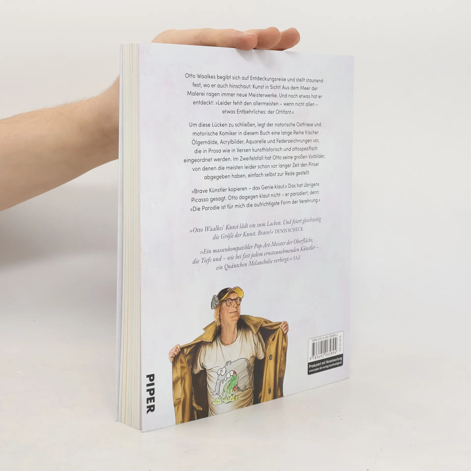 Otto da Windschief und seine großen VorbilderOtto Waalkes wird in diesem Jahr 77 – eben das richtige Alter, um auf immer weitere Entdeckungsreisen zu gehen. Und da die Kunst bedeutend älter ist, verwundert es nicht, wenn auf dem weiten Feld der Malerei noch immer neue Meisterwerke zu entdecken sind. Aber noch etwas hat Otto entdeckt: »Leider fehlt den allermeisten – wenn nicht allen – etwas Entbehrliches: der Ottifant.«Um diese Lücken zu schließen, legt der notorische Ostfriese und motorische Komiker in diesem Buch eine lange Reihe frischer Ölgemälde, Acrylbilder, Aquarelle und Federzeichnungen vor, die in Prosa wie in Versen kunsthistorisch und ottospezifisch eingeordnet werden. Im Zweifelsfall hat Otto seine großen Vorbilder, von denen die meisten leider schon vor langer Zeit den Pinsel abgegeben haben, einfach selbst zur Rede gestellt. »Brave Künstler kopieren – das Genie klaut.« Das hat übrigens Picasso gesagt. Otto dagegen parodiert, denn: »Die Parodie ist für mich die aufrichtigste Form der Verehrung.«MIT MEHR ALS 150 GEMÄLDEN UND ZEICHNUNGEN VON OTTO!