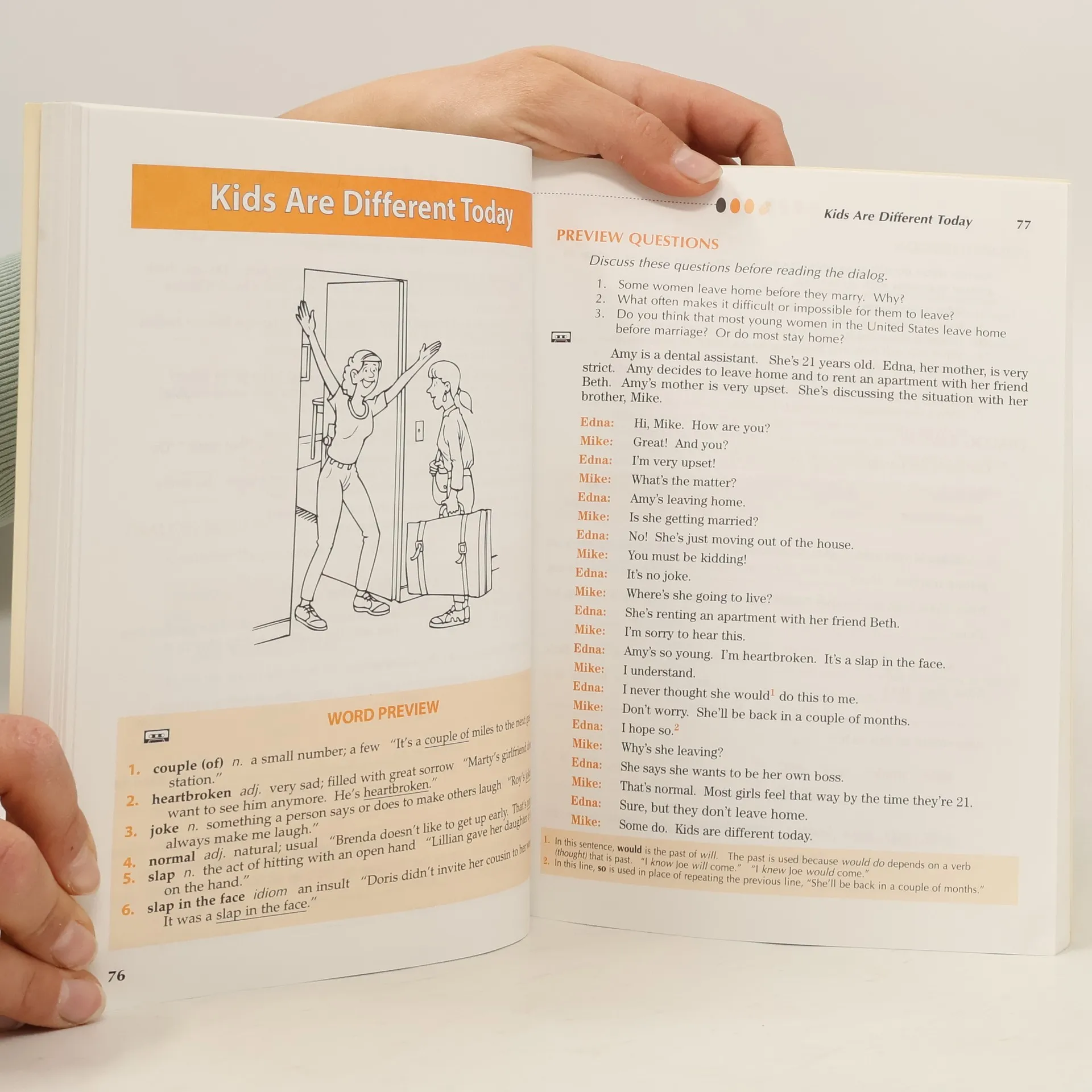 This popular three-level reading series is designed for beginning through low-intermediate students. It features high-interest dialogues and stories about ordinary people from around the world (some famous) with whom the students can identify. Students can identify with the hopes, dreams, and fears of these real people, and will enjoy reading and discussing these stories and dialogues as they relate their own experiences to the class.Each book features: -- Relevant story topics that relate to student's lives.-- Pre-reading and follow-up questions to check students comprehension and generate classroom conversation.-- Word banks that precede each dialog and story to build basic vocabulary.-- A cassette(s) that includes all the dialogues and stories from the text.This popular adult reader features 40 high-interest dialogues and stories covering a variety of themes, settings, and characters that entertain, inform, and touch emotions. Students will identify with the everyday struggles and joys of real people.-- Stimulates interest, improves pronunciation, and increases fluency through role-playing of dialogues. Features three new dialogues and an audio program, as well as a glossary (Word Preview).-- A variety of comprehensive questions strengthen reading skills, while exercises such as matching, synonym/antonym, and close expand vocabulary.