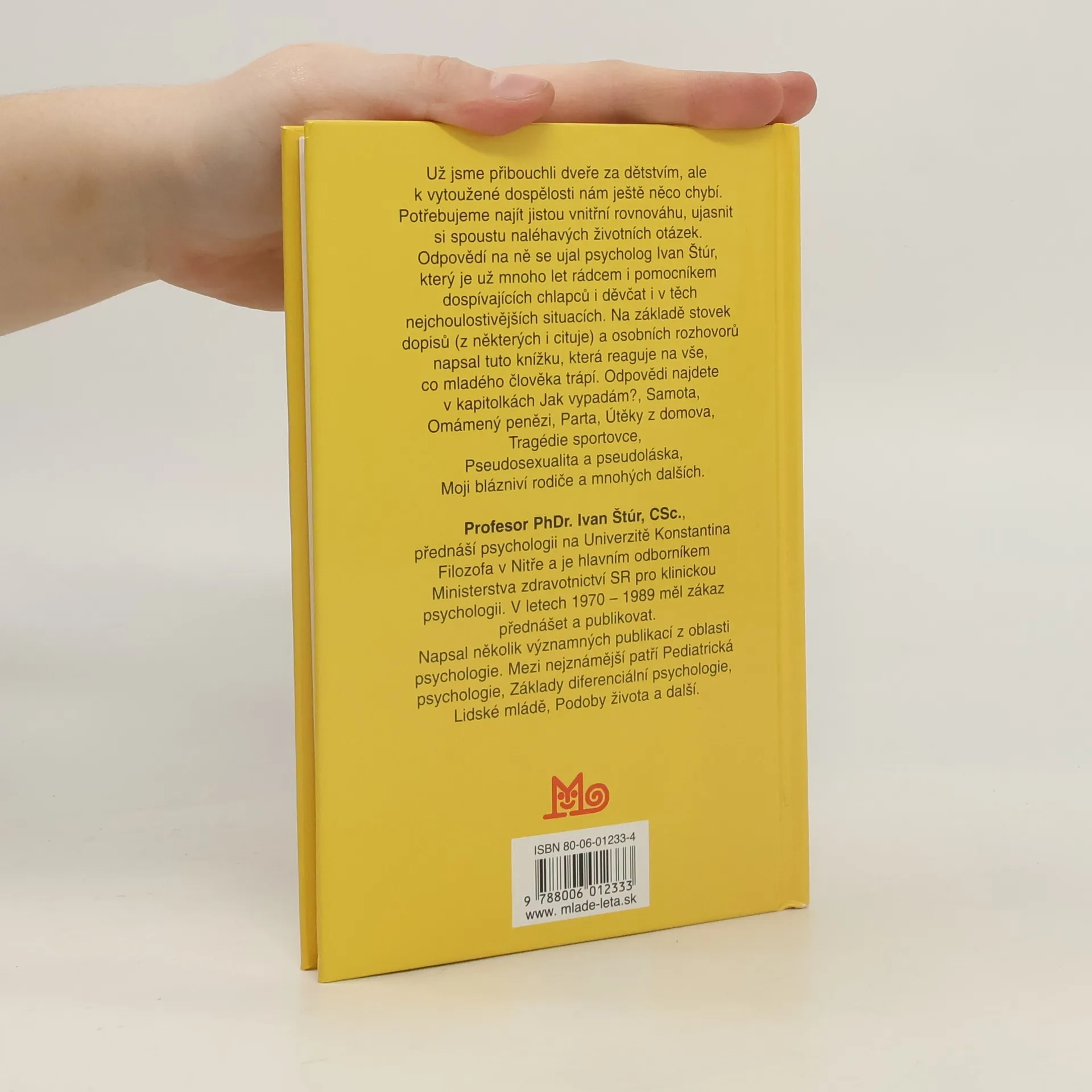 Už jsme přibouchli dveře za dětstvím, ale k vytoužené dospělosti nám ještě něco chybí. Potřebujeme najít jistou vnitřní rovnováhu, ujasnit si spoustu naléhavých životních otázek. Odpovědí na ně se ujal psycholog Ivan Štúr, který je už mnoho let rádce i pomocníkem dospívajících chlapců i děvčat i v těch nejchoulostivějších situacích. Na základě stovek dopisů (z některých i cituje) a osobních rozhovorů napsal tuto knížku, která reaguje na vše, co mladého člověka trápí. Odpovědi najdete v kapitolkách Jak vypadám?, Samota, Omámený penězi, Parta, Útěky z domova, Tragédie sportovce, Pseudosexualita a pseudoláska, Moji blázniví rodiče a mnohých dalších.