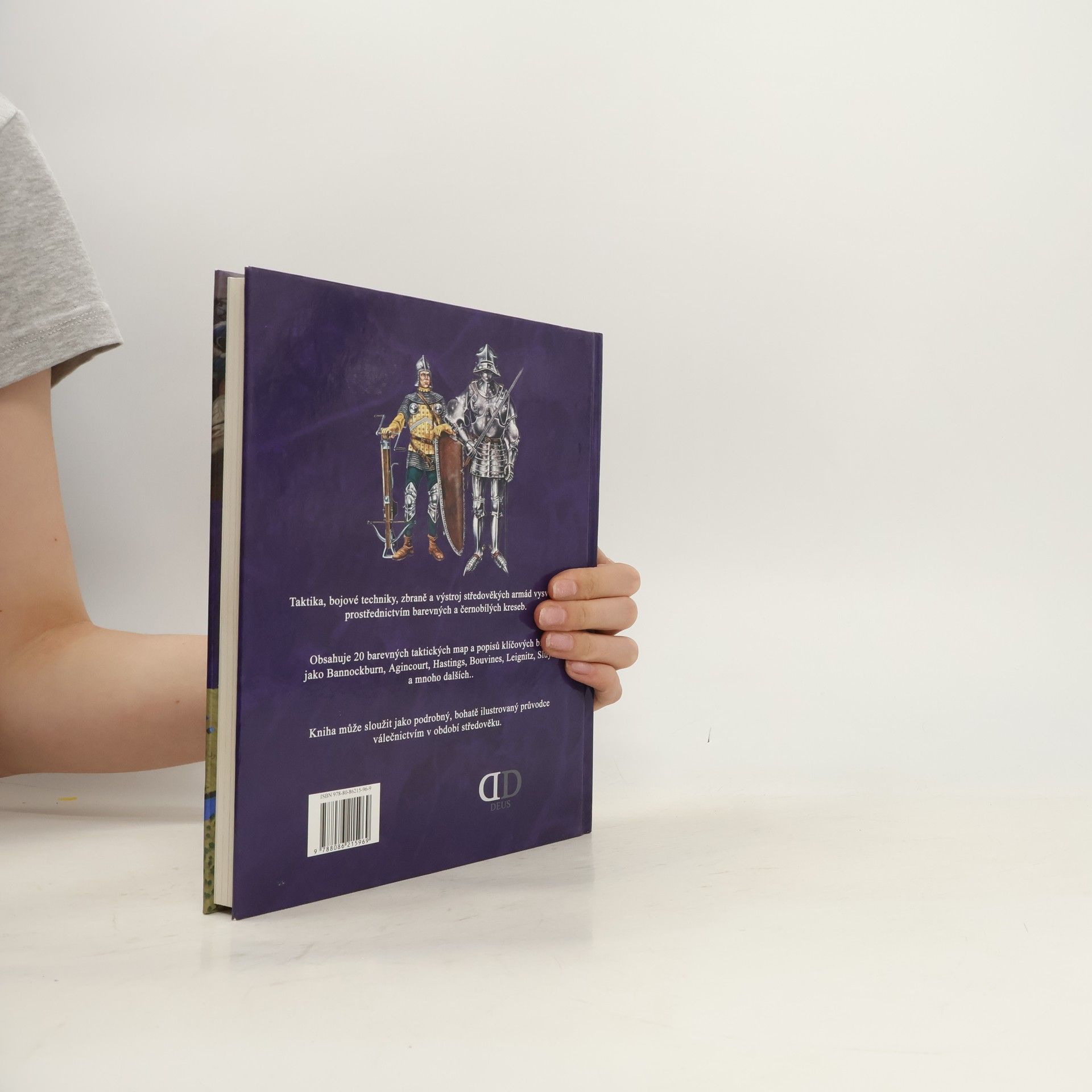 Taktiky, bojové techniky, zbraně a vybaveni středověkých armád vysvětlené pomocí barevných a černobílých kreseb. Obsahuje 20 barevných taktických map a vysvětlení klíčových bitev jako Bannockburn, Agincourt, Hastings, Bouvines, Leignitz, Sluys a mnoho dalších. Kniha může sloužit jako podrobný, bohatě ilustrovaný průvodce válečnictvím v období starověku