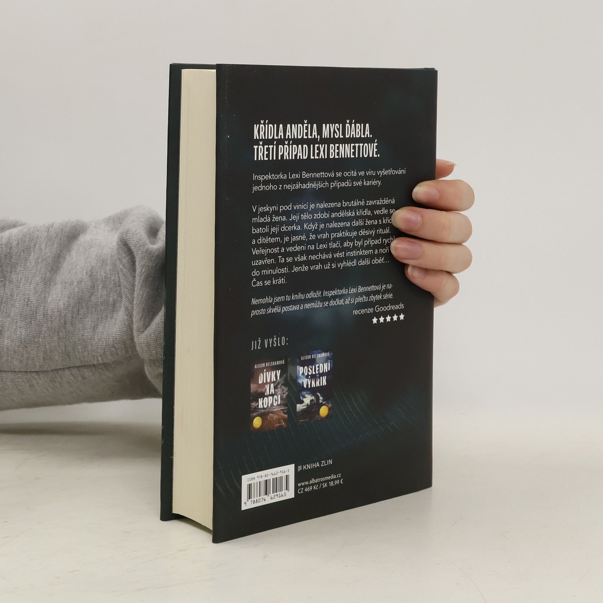 Křídla anděla, mysl ďábla. Třetí případ Lexi Bennettové. Inspektorka Lexi Bennettová se ocitá ve víru vyšetřování jednoho z nejzáhadnějších případů své kariéry. V jeskyni pod vinicí je nalezena brutálně zavražděná mladá žena. Její tělo zdobí andělská křídla, vedle se batolí její dcerka. Když je nalezena další žena s křídly a dítětem, je jasné, že vrah praktikuje děsivý rituál. Veřejnost a vedení na Lexi tlačí, aby byl případ rychle uzavřen. Ta se však nechává vést instinktem a noří se do minulosti. Jenže vrah už si vyhlédl další oběť… Čas se krátí.