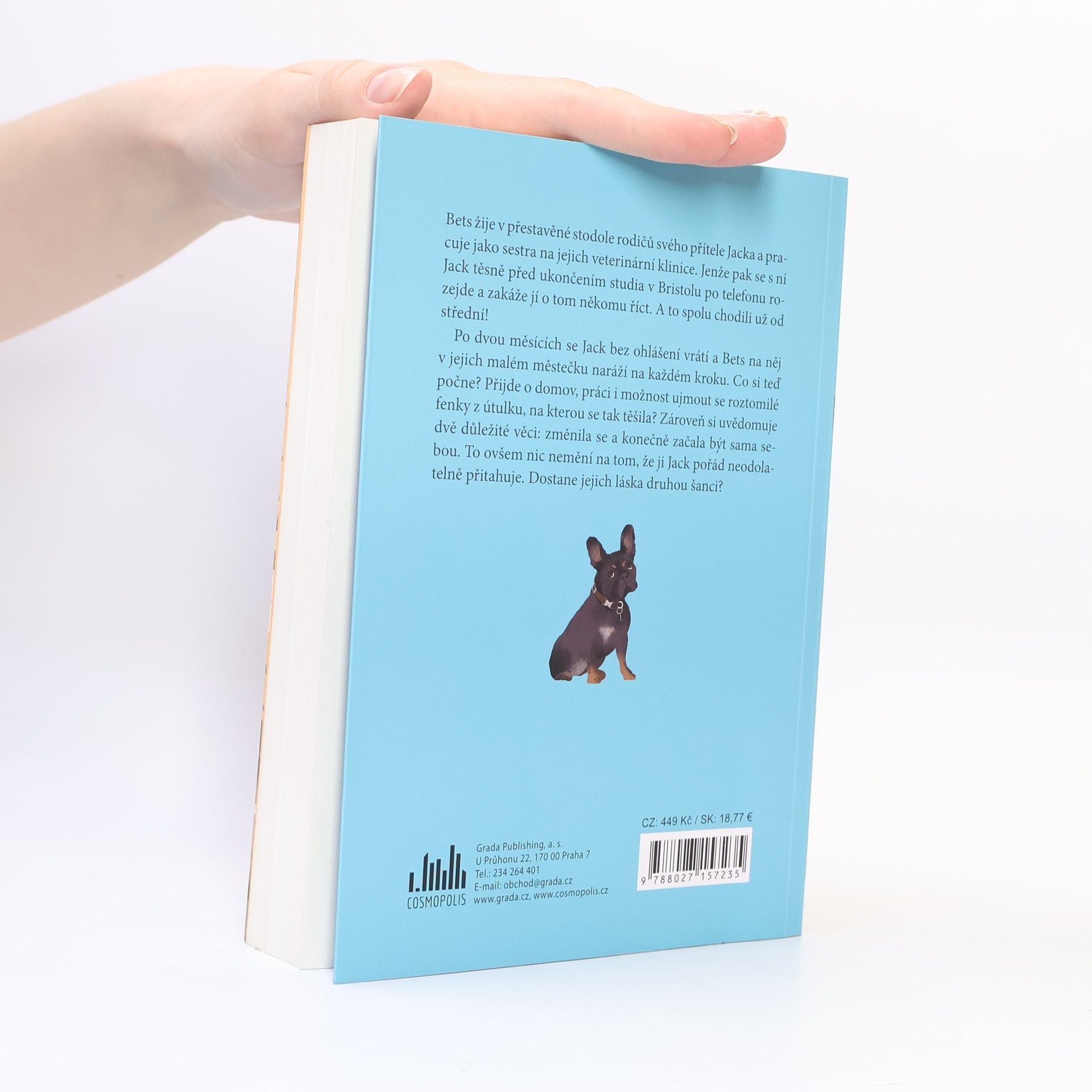 Bets žije v přestavěné stodole rodičů svého přítele Jacka a pracuje jako sestra na jejich veterinární klinice. Jenže pak se s ní Jack těsně předtím, než dokončí studium v Bristolu, po telefonu rozejde a zakáže jí o tom komukoli říct. A to spolu chodili už od střední! Po dvou měsících se Jack bez ohlášení vrátí a Bets na něj v jejich malém městečku naráží na každém kroku. Co si teď počne? Přijde o domov, práci i možnost ujmout se roztomilé fenky z útulku, na kterou se tak těšila? Zároveň si uvědomuje dvě důležité věci: změnila se a konečně začala být sama sebou. To ovšem nic nemění na tom, že ji Jack pořád neodolatelně přitahuje. Dostane jejich láska druhou šanci?